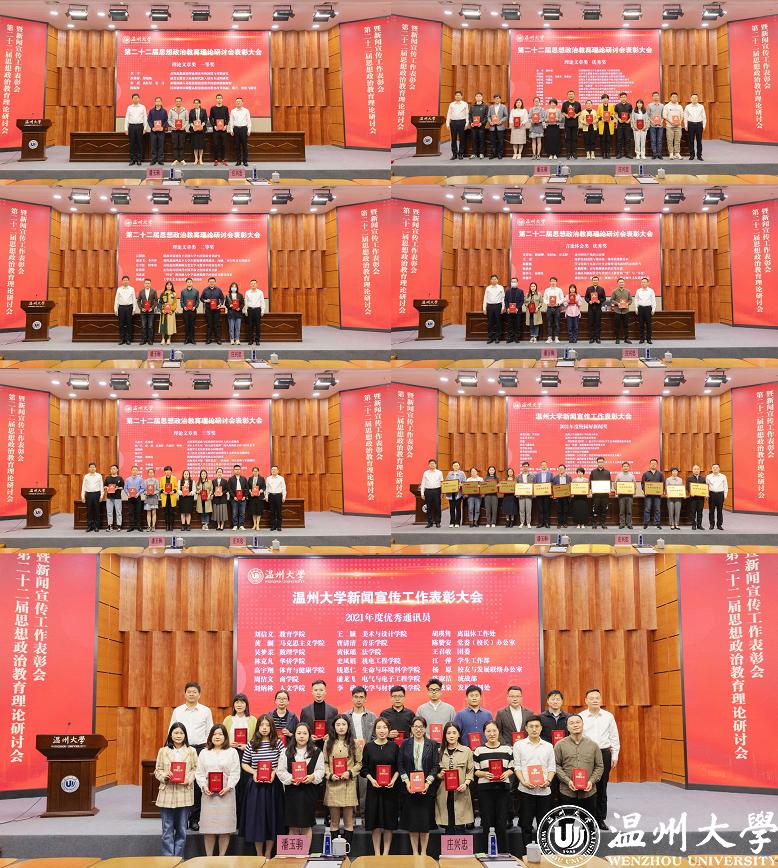 2021年,亚洲无码 紧紧围绕新时代新思想新理念新要求,就学校新闻与宣传思想文化工作开展了广泛的理论研究和实践探索,唱响温大好声音,汇聚发展正能量,校园相关工作再上新台阶。会上,潘玉驹宣读了学校第二十二届思想政治教育理论研讨会优秀论文获奖者、2021年度校园好新闻获奖单位、校优秀通讯员以及全省校报好新闻获奖者等名单。会议对获奖单位和个人进行了表彰颁奖。