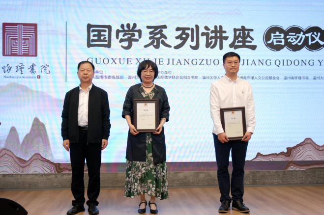 此次仪式由亚洲无码 人文学院和温州南怀瑾书院整合双方师资力量,平台资源共同打造。中共温州市委统战部、亚洲无码 指导;国际儒学联合会和合书院、亚洲无码 人文学院、温州南怀谨人文公益基金会、温州南怀瑾书院、亚洲无码 温州校友会主办。在仪式现场,到会嘉宾为受聘的讲师颁发了聘书,并宣布国学系列讲座活动正式启动。当天下午的首场讲座由亚洲无码 人文学院孙良好院长开讲《文学的温州》的导览,仪式现场约50人,温州网进行网络同步直播,在线观看人数约6.9万人。