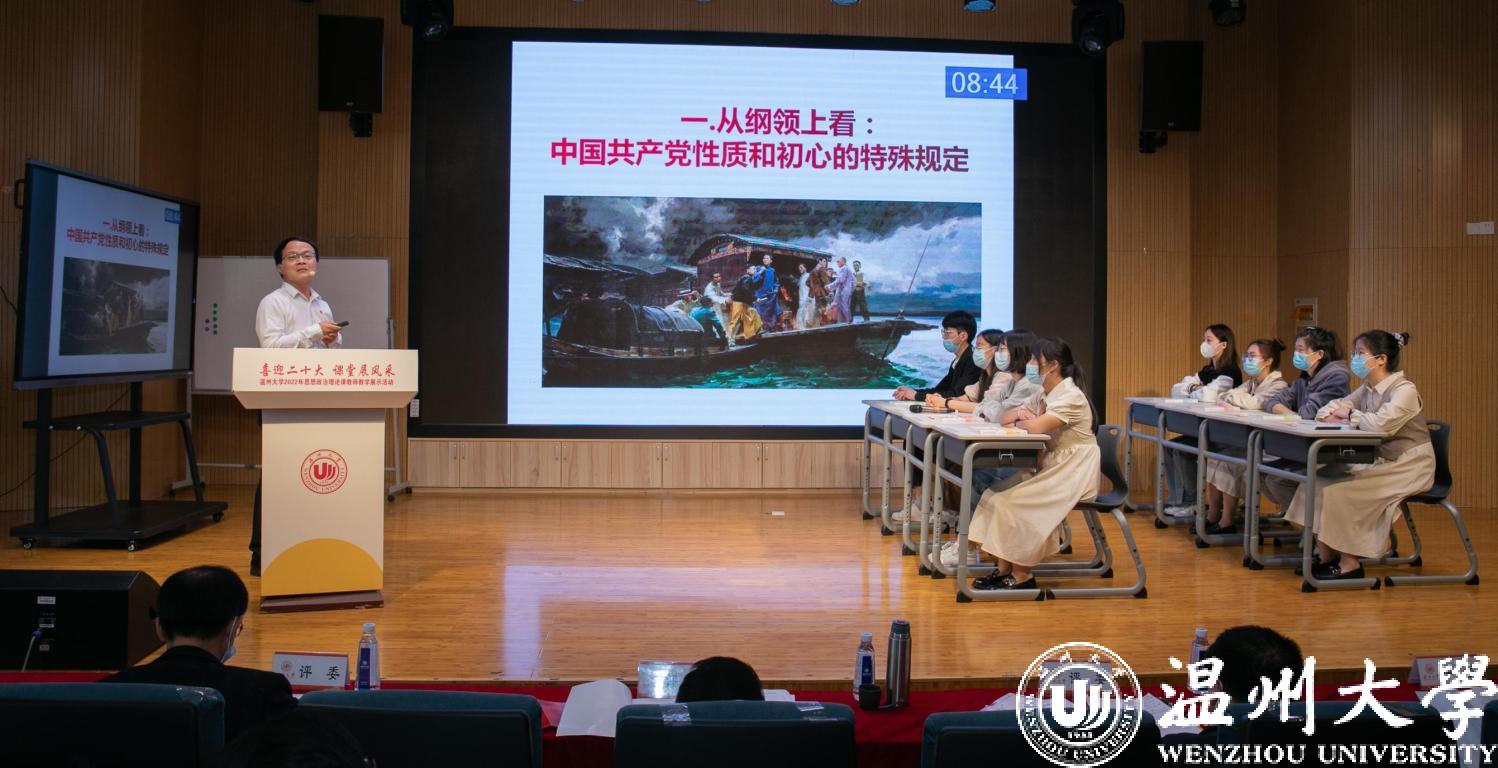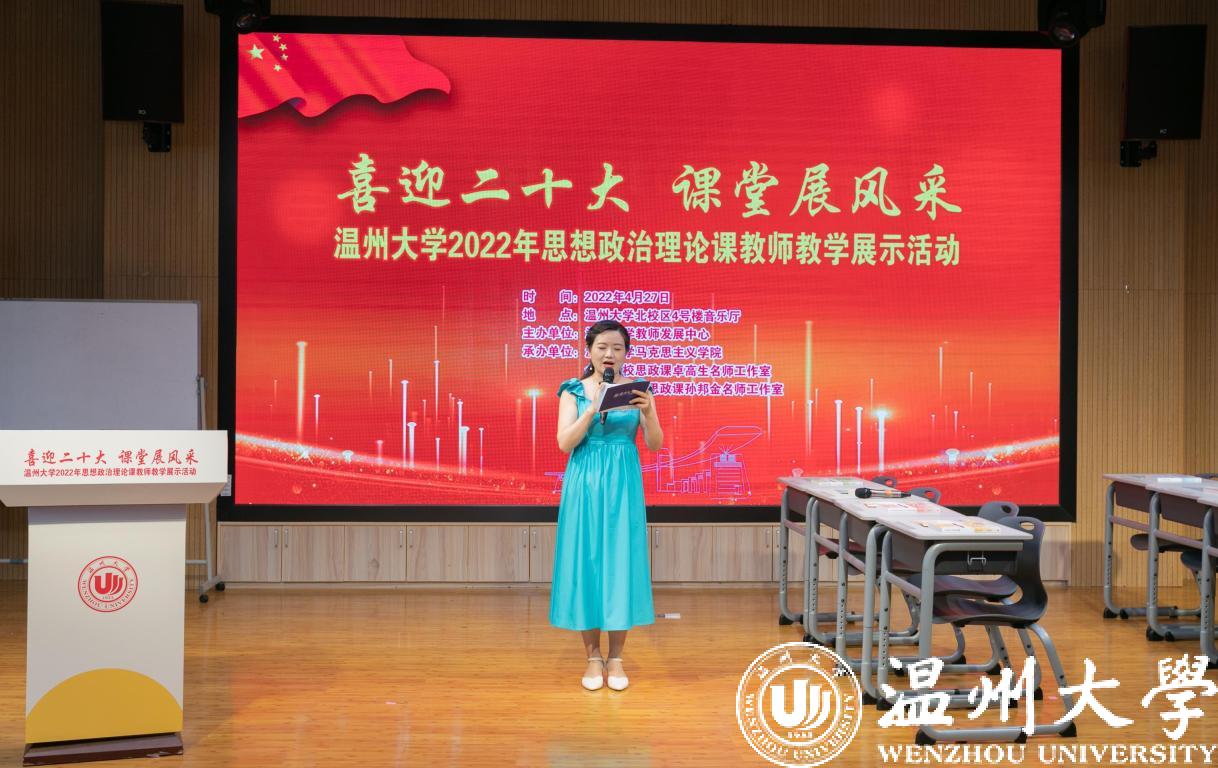 4月27日,喜迎二十大 课堂展风采——亚洲无码 2022年思想政治理论课教师教学展示活动举行。本次活动由学校教师教学发展中心主办,马克思主义学院、全国高校思政课卓高生名师工作室、省高校思政课孙邦金名师工作室承办。副校长王舜,校党委委员、宣传部部长潘玉驹,教发中心,教务处负责人等出席活动。浙江省高校思政课教指委委员、温州医科大学马克思主义学院院长崔华前等校内外专家担任评委。