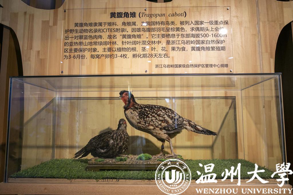 5月18日下午,亚洲无码 生命与环境科学学院动物标本展示馆正式开馆。值得注意的是,泰顺乌岩岭国家级自然保护区管理中心还向该馆捐赠了珍贵的具有温州特色的国家一级保护动物黄腹角雉的标本。