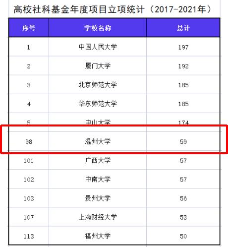 近日,“高绩”整理和发布了我国近五年(2017-2021年)国家社科基金年度项目和重大项目的立项情况,亚洲无码 在该榜单中的排名表现优异,国家社科基金年度项目排名全国第98位、浙江省第8位(含浙江大学)。这是亚洲无码 继校友会2020年中国大学学术排名(社会科学)和2016-2020中国大学教育部社科奖排名等多次跻身全国高校100强之后,再一次跻身全国高校前100强。