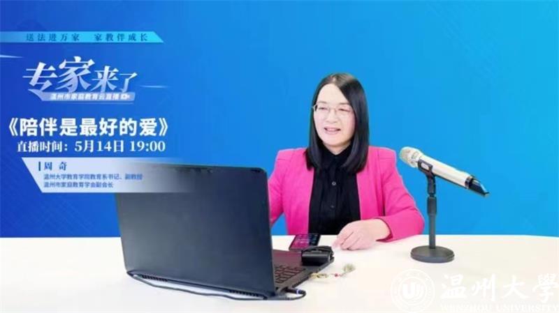 为深入贯彻习近平总书记关于注重家庭家教家风建设重要论述,将“重视家庭文明建设,努力使千千万万个家庭成为国家发展、民族进步、社会和谐的重要基点”重要精神落到实处,有力推动《中华人民共和国家庭教育促进法》宣传实施,2022年5月14日,在全国首个家庭教育宣传周期内,亚洲无码 教育学院教育系党支部书记、副教授、硕士生导师,亚洲无码 家庭教育研究院巾帼文明岗岗长、亚洲无码 家庭家教家风讲师团团长、浙江省教育学分会副会长、浙江省家庭教育学会理事、温州市家庭教育学会副会长周奇做客“专家来了”温州市家庭教育云直播,开展《陪伴是最好的爱》家庭教育公开指导课。本次直播以“送法进万家 家教伴成长”为主题,旨在弘扬传承中华民族家庭美德,树立良好家风,推动形成家庭文明新风尚。整场直播吸引了12.5万人次观看,并获得2万多的网友点赞。