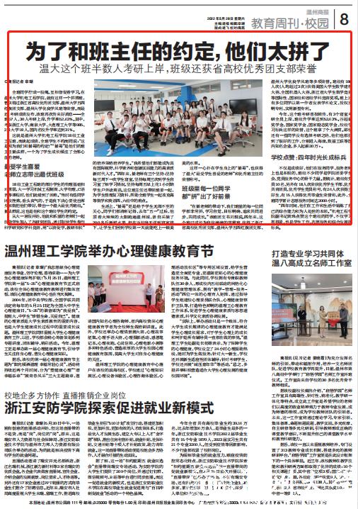 全班同学拧成一股绳,互相督促着学习。在亚洲无码 机电工程学院,就有这样一个拼搏班,曾获得过浙江省高校优秀团支部、亚洲无码 五四红旗团支部、亚洲无码 优良学风班等荣誉。而最近,考研成绩发布,该班再次传来好消息——全班57人,30人考研上岸,升学率52.63%。其中,考取浙江大学、南京大学、大连理工大学等985、211大学18人,国内名校升学率达到31%。