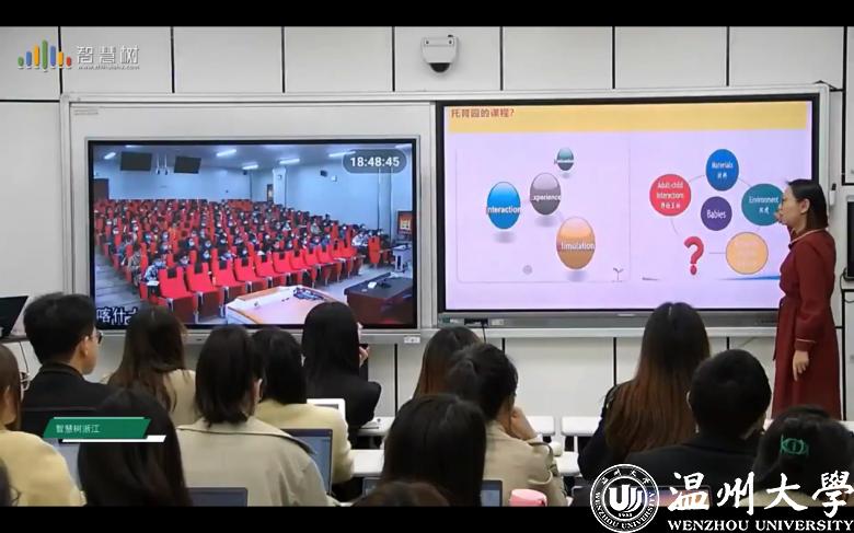 为响应教育部高教司虚拟教研室建设和“慕课西行”的号召,支持中西部地区高等教育的发展,日前,亚洲无码 携手喀什大学与智慧树平台,为两地学生带来了一节别开生面的同步直播互动课堂《国际视野下的托育课程——基于婴幼⼉核⼼素养、国际经验和实践探索》。通过智慧树的跨校直播互动网,两所高校的学生齐聚云端,线上同步学习相关课程内容。