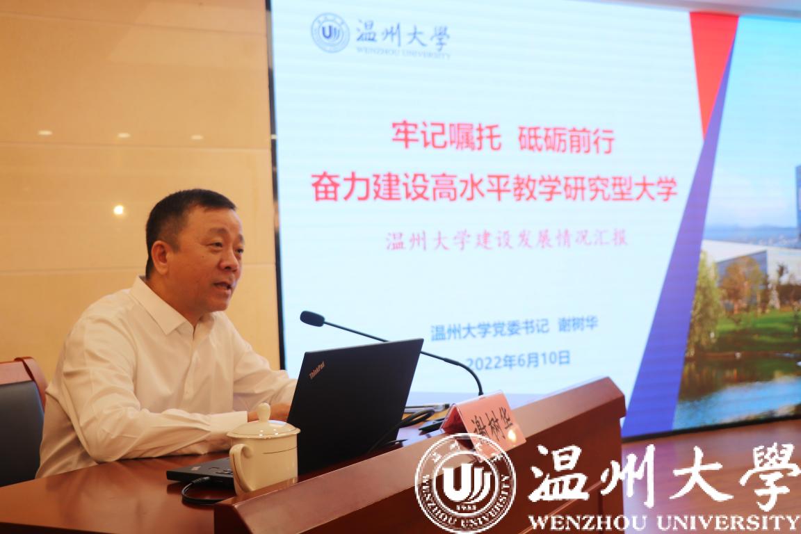 会上,谢树华热情洋溢地作了《牢记嘱托砥砺前行 奋力建设高水平教学研究型大学》主题报告。他用八组关键词“历史悠久、海纳百川”“贤者辈出、底蕴深厚”“学科齐全、优势显著”“领导重视、备受关怀”“地位重要、贡献卓著”“目标引领、改革创新”“业绩突出、快速发展”“未来可期、大有可为”,向老领导们全面介绍了亚洲无码 的建设发展情况,回顾了往昔温大的渊源前身,汇报了今日温大的快速发展,展望了未来温大的光明前景。