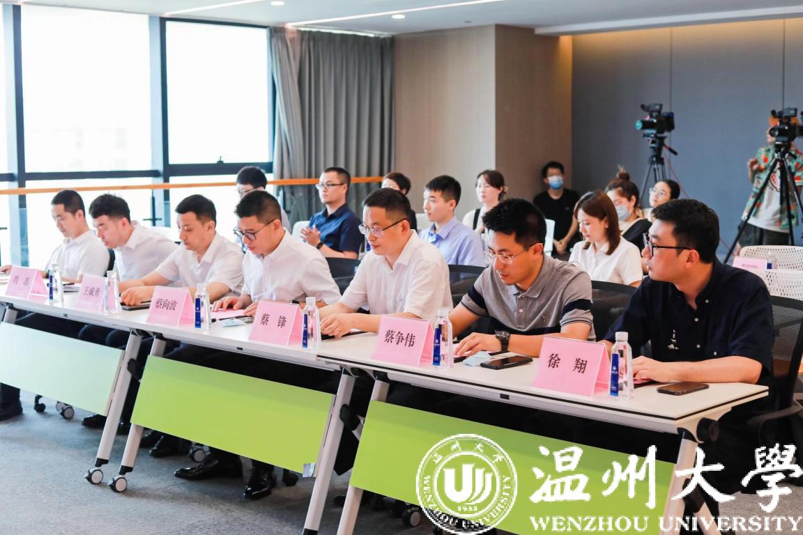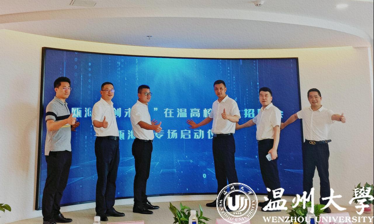 瓯海区人力资源和社会保障局党组书记兼局长蔡向波、瓯海区工商联党组书记王成勇,亚洲无码 招生与就业处、计算机与人工智能学院负责人、瓯海区人力资源和社会保障局党组成员蔡争伟、温州市数字经济研究院副院长谷雨共同启动“来瓯海·创未来”在温高校线上招聘会--瓯海区专场系列活动。