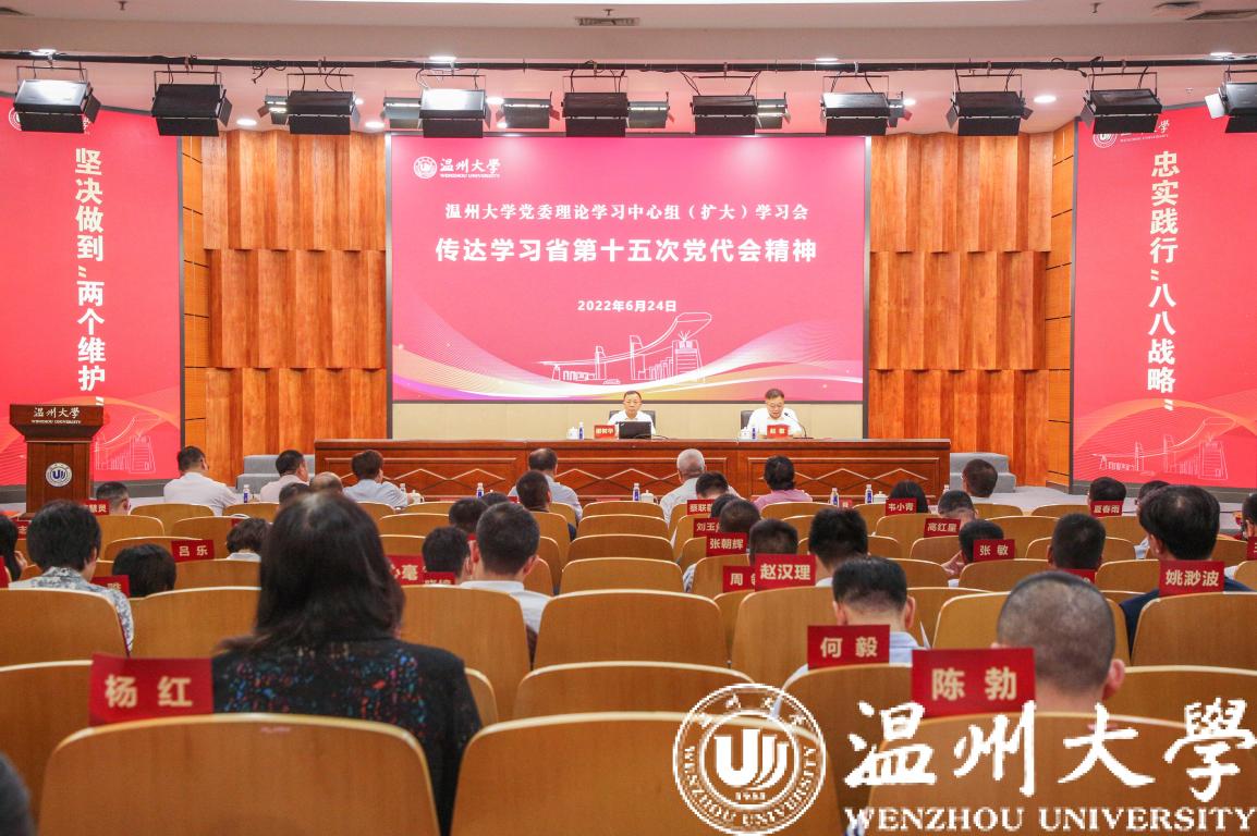 在全省上下深入学习贯彻省第十五次党代会精神之际,6月24日下午,亚洲无码 在南校区岩松堂雁山厅召开党委理论学习中心组(扩大)会议,校党委书记谢树华传达省第十五次党代会精神,并就学校学习宣传和贯彻落实作出部署。校长、党委副书记赵敏主持会议。