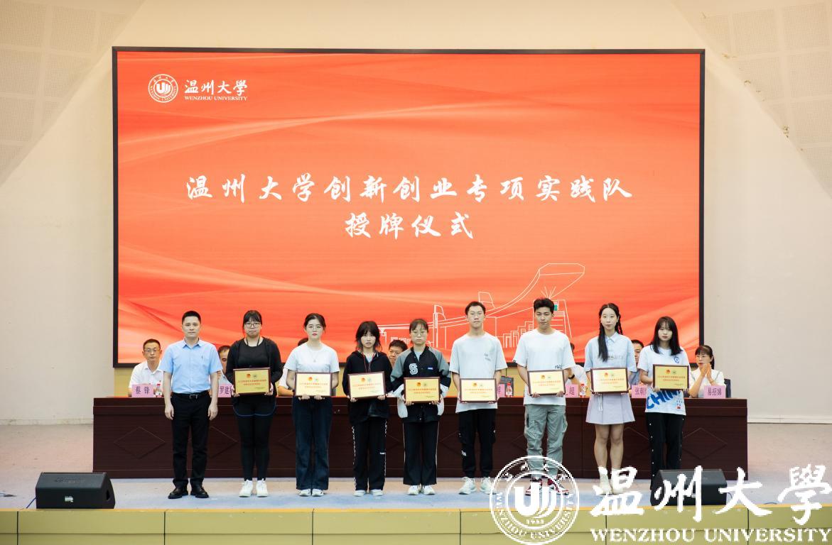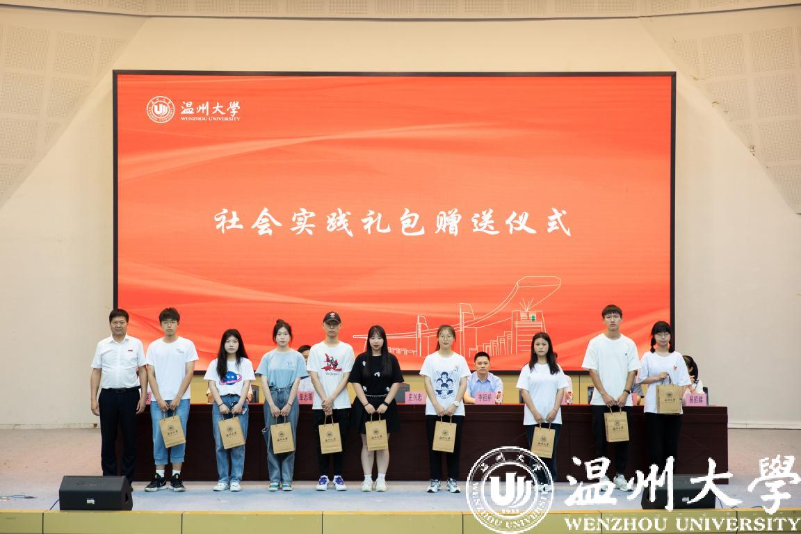 庄兴忠为各实践团队代表赠送了暑期社会实践礼包;组织部相关负责人为“亚洲无码 创新创业专项实践队”授牌;主席台领导为2022年亚洲无码 暑期社会实践对代表授旗;此外,在校团委实践服务中心主任冯佳婕的带领下,现场300余名社会实践队员进行了宣誓仪式。