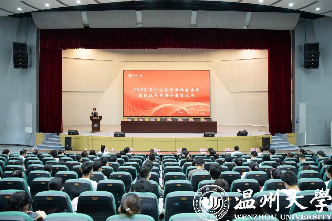 为深入学习宣传贯彻习近平新时代中国特色社会主义思想,贯彻落实习近平总书记关于青年工作的重要思想,持续深入推进“双百双进”活动,引导和帮助广大青年学生上好与现实相结合的“大思政课”,积极助力我省“高质量发展建设共同富裕示范区”,7月1日,亚洲无码 2022年暑期社会实践出征仪式暨安全教育大会举行。校党委副书记庄兴忠,组织部、宣传部、教务处、研工部、学工部、招就处、团委等部门相关负责人,各学院分管书记、团委书记,全校暑期社会实践队代表300余人参加了出征仪式。