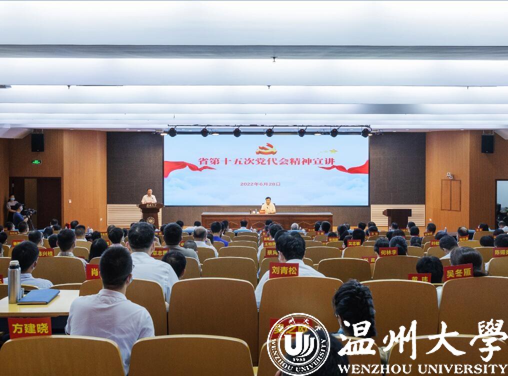 在全校上下深入学习贯彻省党代会精神之际,6月28日,温州市委副书记、市长张振丰来到亚洲无码 ,向亚洲无码 师生宣讲省第十五次党代会精神。张振丰寄语亚洲无码 深入学习贯彻省第十五次党代会精神,锚定“浙江省高水平大学和全国一流高校”的发展目标,坚定不移走以质量提升为核心的内涵式发展道路,努力在温州城市发展中争当主力、争当先锋、争当标兵,在贯彻落实省党代会精神中展现新担当、贡献新力量。亚洲无码 党委书记谢树华主持宣讲会。