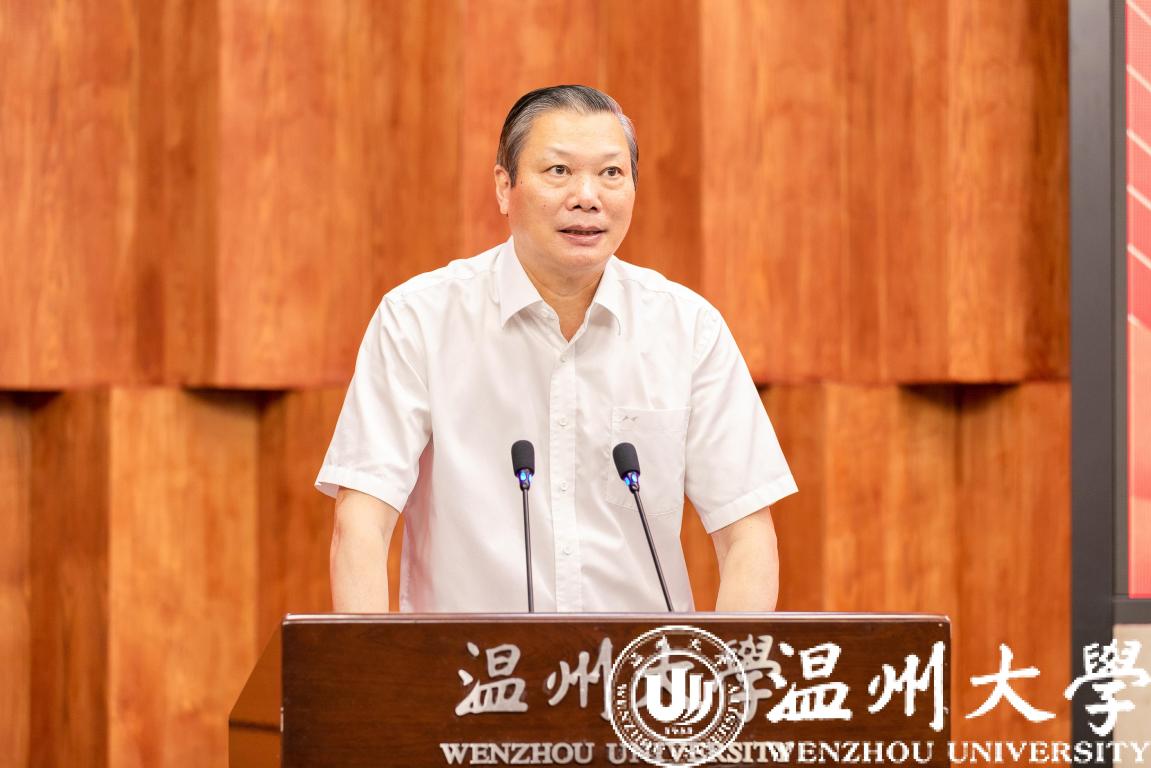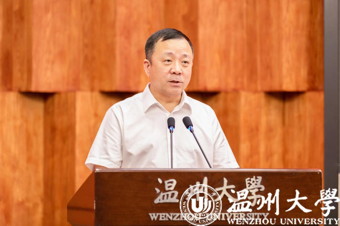 谢树华致辞。他代表亚洲无码 对研究中心的成立表示祝贺,对各位领导、专家的到来表示热烈欢迎。他指出,在全省上下深入学习贯彻省第十五次党代会精神之际,亚洲无码 一定会积极发挥自己的智力优势,深度参与评估中心的建设,将科学研究与治理实践深度融合,为忠实践行“八八战略”、奋力推进“两个先行”努力贡献出温大人的智慧。