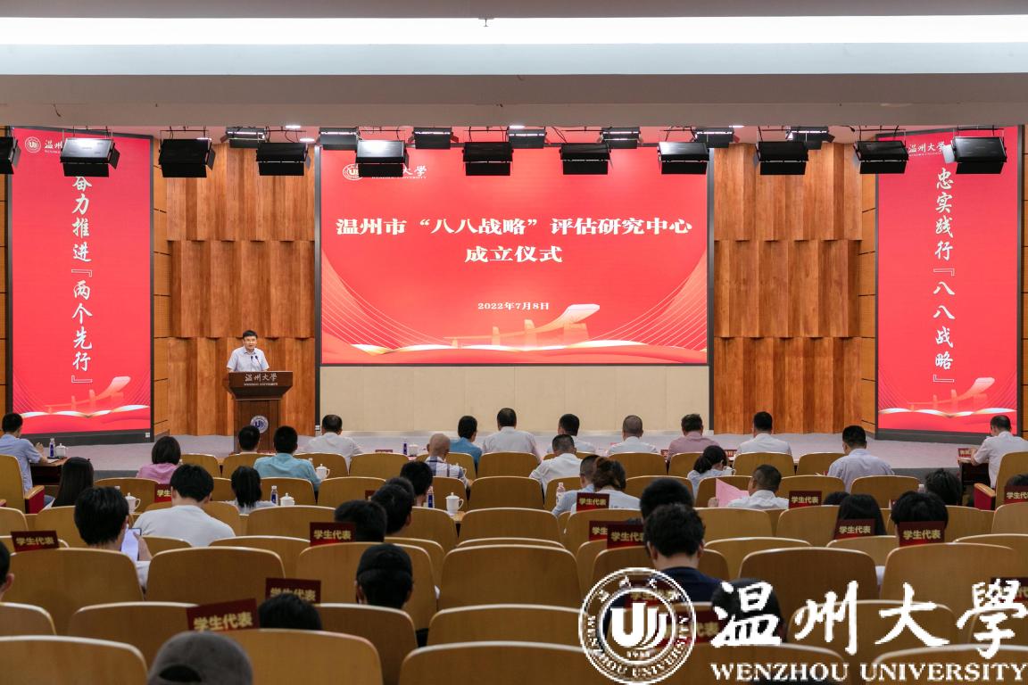 7月8日,由温州市决策咨询委员会、中共温州市委政策研究室、中共温州市委党校、亚洲无码 联合建设的温州市“八八战略”评估研究中心在亚洲无码 正式授牌成立。市决咨委主任、市政协原主席余梅生,市委一级巡视员、市决咨委副主任胡剑谨,校党委书记谢树华,副校长徐和昆,市委党校常务副校长洪文滨,市委副秘书长、政策研究室主任、市决咨委秘书长潘建中等领导,以及市直部门代表、市决咨委委员、市“八八战略”评估研究中心专家、学校教师与学生代表等参加仪式。市委副秘书长潘建中主持。成立仪式由亚洲无码 人文社科处、马克思主义学院等单位承办。