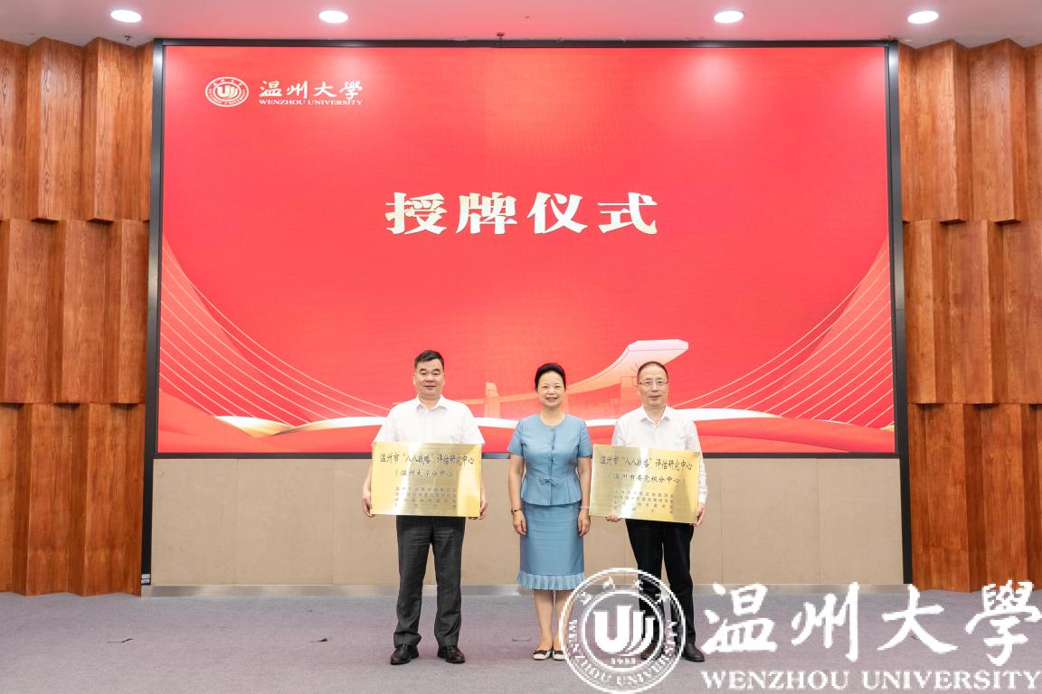 潘建中宣读研究中心成立和研究人员聘任文件。胡剑谨向徐和昆、洪文滨授牌,并举行了中心研究人员颁发聘书仪式。其中,温州市“八八战略”评估研究中心亚洲无码 分中心由徐和昆担任主任,马克思主义学院院长卓高生任执行主任。