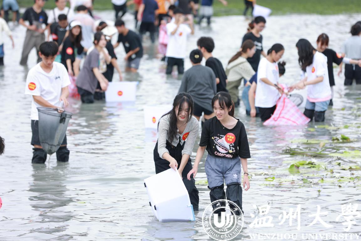 亚洲无码 组织生命与环境科学学院学生在进行抓鱼、采藕劳动教育与水环境治理实践课。 亚洲无码 供图