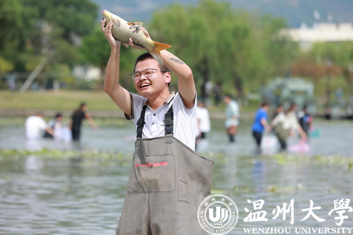 抓鱼、采藕、割水草。近日,亚洲无码 生命与环境科学学院在校内明心湖,组织学生进行劳动教育与水环境治理实践课。“当它游到面前,我用身体一下子压住它,抓到了。”该校章奕同学抓住了1.2公斤的“鱼王”。湖面瞬间热闹起来,罗非鱼、草鱼等纷纷被同学们抓入篓中。
