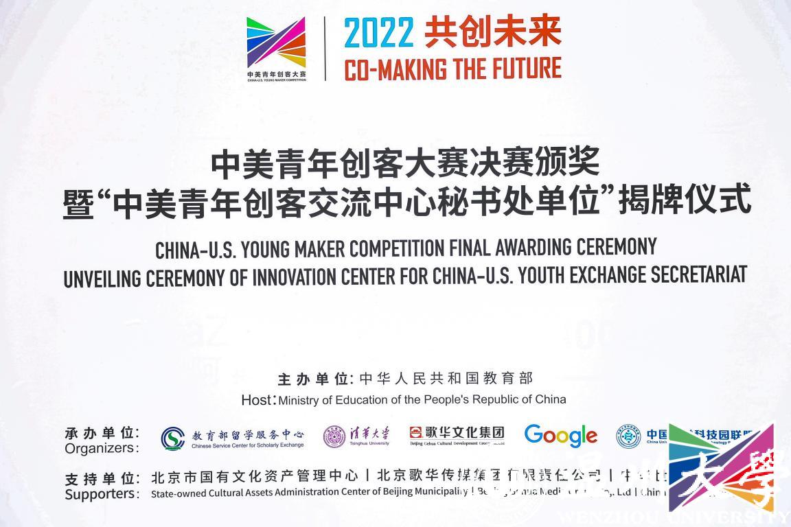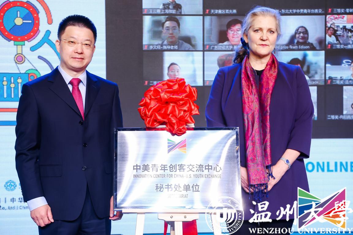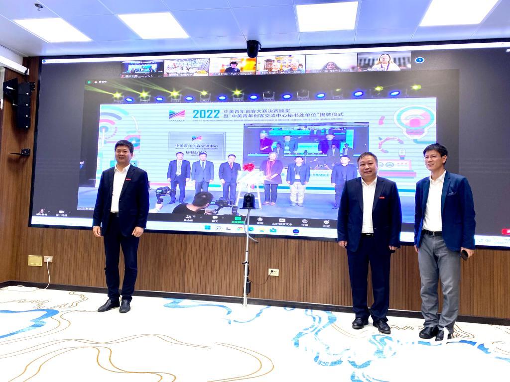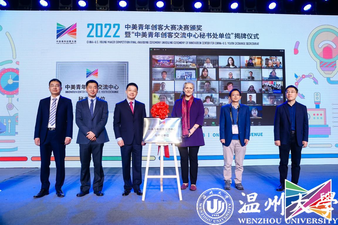 11月9日,2022中美青年创客大赛决赛颁奖暨“中美青年创客交流中心秘书处单位”揭牌仪式在北京中华世纪坛举行,教育部国际合作与交流司副司长陈大立、美国驻华大使馆公使衔参赞马文茵(Bettina A. Malone)、北京市委宣传部副部长张劲林、教育部留学服务中心副主任李晓哲等领导出席活动。活动在亚洲无码 设立线上分会场,校长赵敏、党委副书记庄兴忠出席,党校办、宣传部、创新创业学院等部门学院相关负责人及温州肯恩大学代表参会。