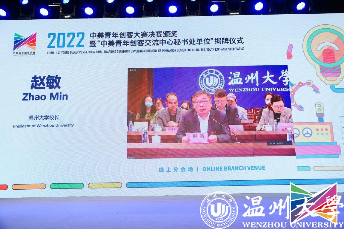 校长赵敏作为中美青年创客交流中心秘书处单位及唯一受邀高校代表在会上致辞发言。他指出,亚洲无码 是浙南闽北赣东唯一的综合性教学研究型大学,学校于2019年迈进浙江省重点建设高校行列,2021年成功增列为博士学位授予单位。经过20余年的改革与发展,创新创业教育已发展成为亚洲无码 重要办学特色之一,形成了“立足区域、分类分层、专创融合、协同递进”的人才培养新模式,走出了一条具有地方区域特色的创新创业教育新路径,创新创业教育具有示范性和影响力。他强调,在亚洲无码 设立中心秘书处单位,体现了各位领导专家对亚洲无码 的高度重视和充分信任,亚洲无码 有实力、有优势、更有信心承担并做好教育部中美青年创客交流中心秘书处工作。秘书处单位成立后,学校将在加强资源汇聚、加强活动组织、加强经验推广等方面充分发挥综合优势,为中美双方青年创新创业合作搭建平台,扩大和深化中美人文交流,促进创新创业事业高质量发展。