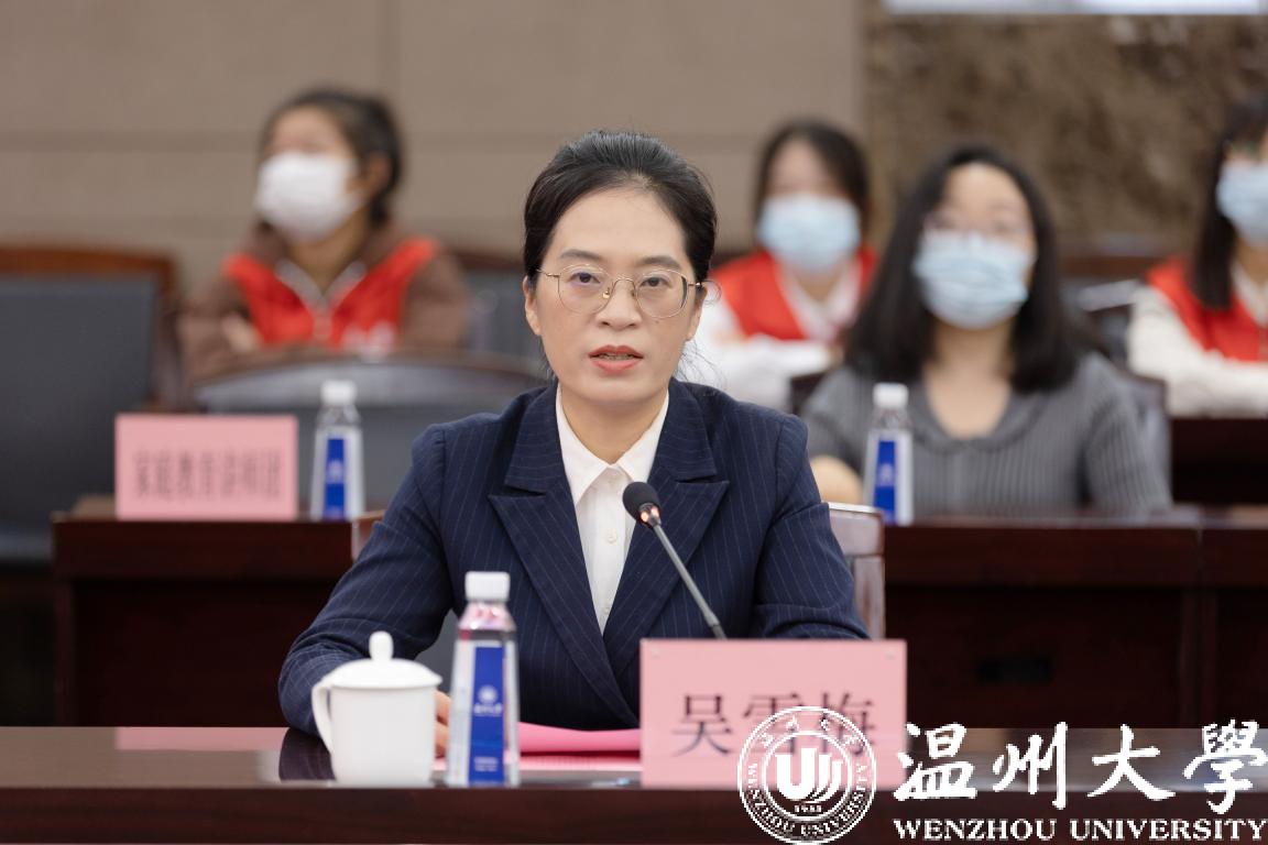 吴雪梅致辞。她介绍了瓯海区妇联近年来的工作和成效。她指出,亚洲无码 为瓯海区提供了大量的优质人才和治理支撑,亚洲无码 妇联也是全力支持瓯海区妇联工作。校地妇联战略合作,实现优势互补,必将引领校内外广大妇女发挥好在社会生活和家庭生活中的独特作用,引导家庭成员共同升华爱国、爱家的家国情怀,进一步推动资源和人才服务的共享共育共优,打造具有特色的校地合作共建典型示范和新型标杆。
