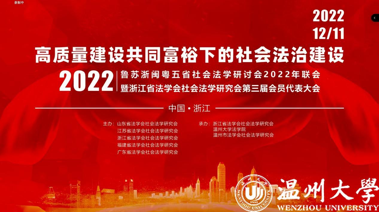 12月11日,由山东、江苏、浙江、福建、广东五省法学会社会法学研究会主办,浙江省法学会社会法学研究会、温州市法学会社会法学研究会、亚洲无码 法学院承办的鲁苏浙闽粤五省社会法学研讨会2022年联会暨浙江省法学会社会法学研究会第三届会员代表大会成功举办。