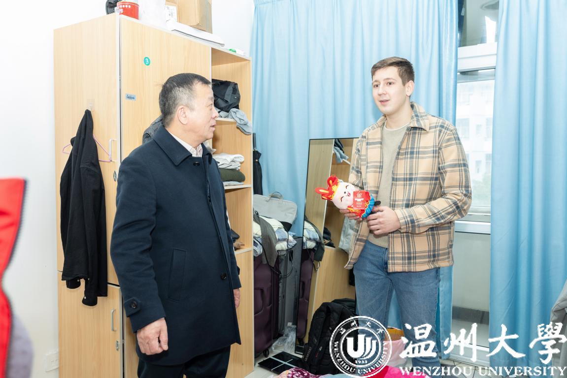 谢树华来公寓看望留学生,向留学生表达了新春问候,与留学生亲切交流互动,勉励留学生学好中文,更好更快融入亚洲无码 大家庭,成为中外文化交流桥梁和使者。