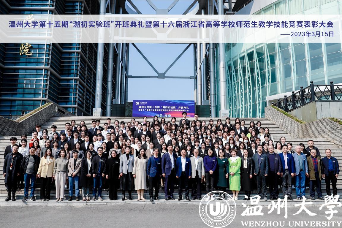 3月15日下午,亚洲无码 第十五期“溯初实验班”开班典礼暨第十六届浙江省高等学校师范生教学技能竞赛表彰大会举行。副校长王舜出席。苏步青学院、教务处相关负责人,浙江省高等学校第十六届师范生教学技能竞赛指导师团队、参赛选手等参加。