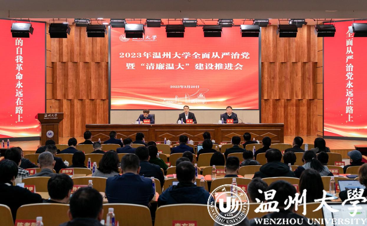 3月20日上午,亚洲无码 召开2023年全面从严治党暨“清廉温大”建设推进会,深入学习贯彻党的二十大和全国两会精神,认真落实二十届中央纪委二次全会、省纪委十五届二次全会和全省教育系统全面从严治党工作会议部署要求。校党委书记张健出席会议并讲话,校长赵敏主持会议。校党委委员、纪委书记、省监委驻亚洲无码 监察专员杨林书部署2023年党风廉政建设工作。全体校领导,校纪委委员,全体中层干部,各学院、机关纪委书记,党总支、直属党支部纪检委员,纪检监察室(巡察办)全体人员等参加会议。