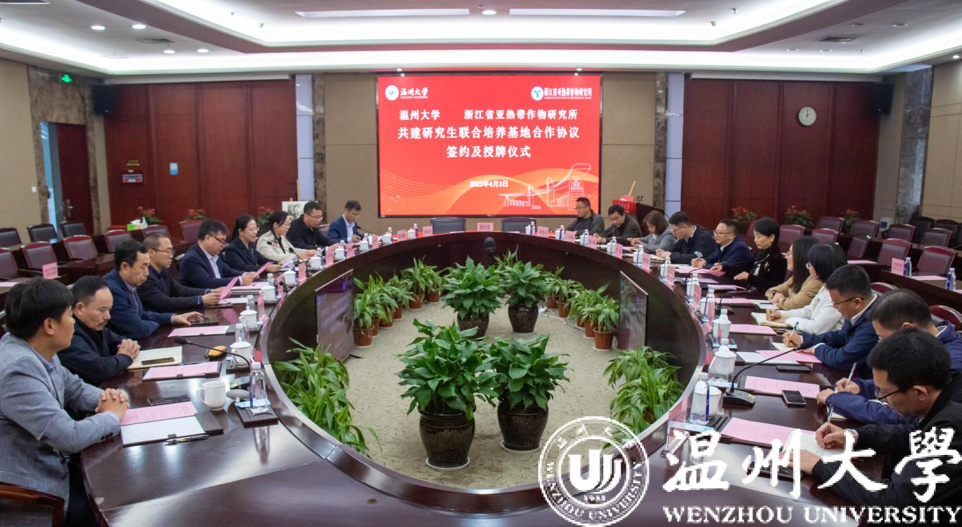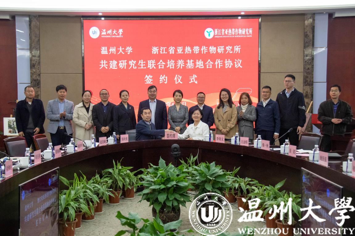 张文致辞。他指出,希望双方发挥各自优势,利用浙江省亚热带作物研究所雄溪科研创新基地平台(国家级农业科技园核心区)及亚洲无码 城镇水污染生态治理技术国家地方联合工程研究中心等平台条件,通过多种形式开展全面合作,共同建设研究生联合培养基地,构建产学研联盟的创新体系,建立产学研长期合作关系,形成学科建设、专业人才、科研成果、科创平台、成果转化协调发展,努力实现“优势互补、协同创新、资源共享、互利共赢”。切实回应发展性需求,提高研究生实践与创新能力,更好地服务温州经济社会发展。