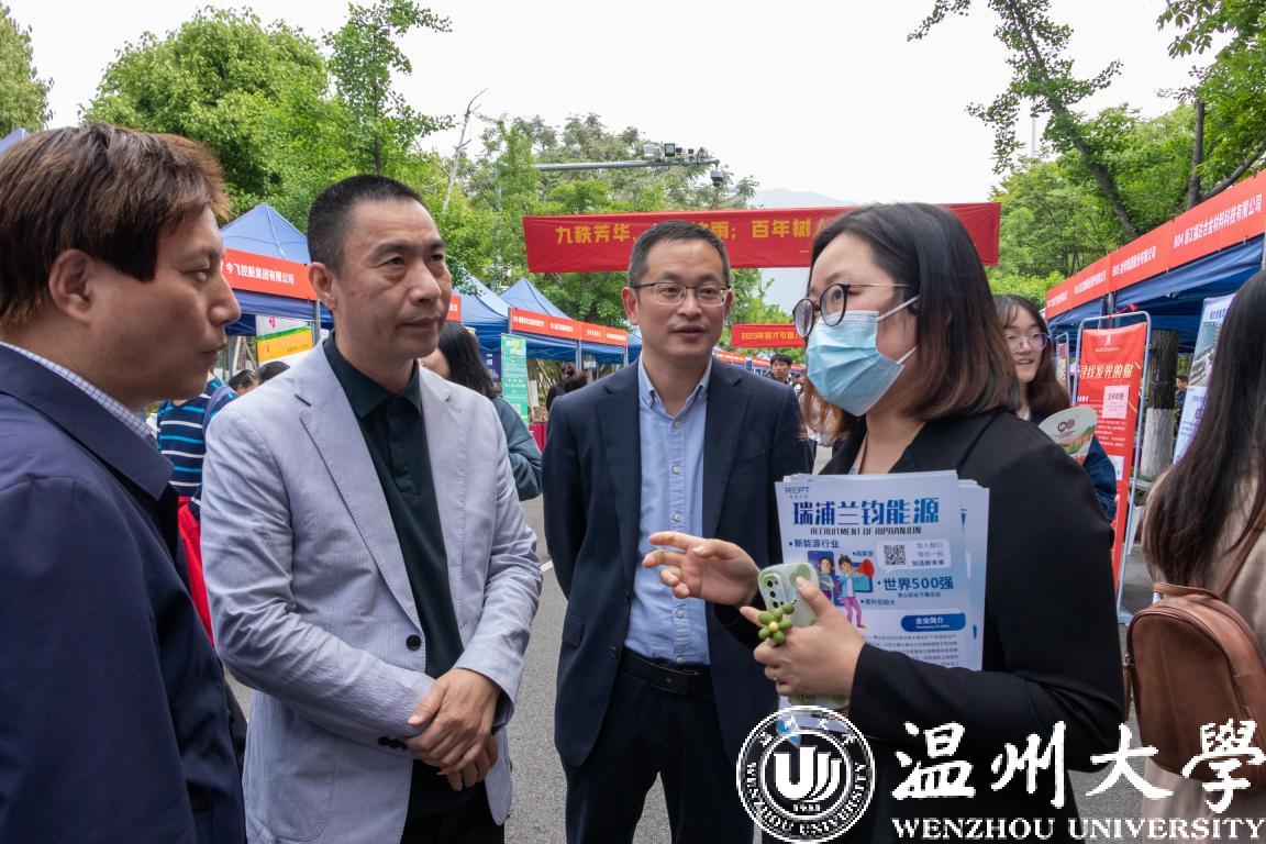 企业招聘负责人向亚洲无码 党委委员、纪委书记杨林书,温州市人社局党组成员、副局长胡正长介绍企业招聘情况