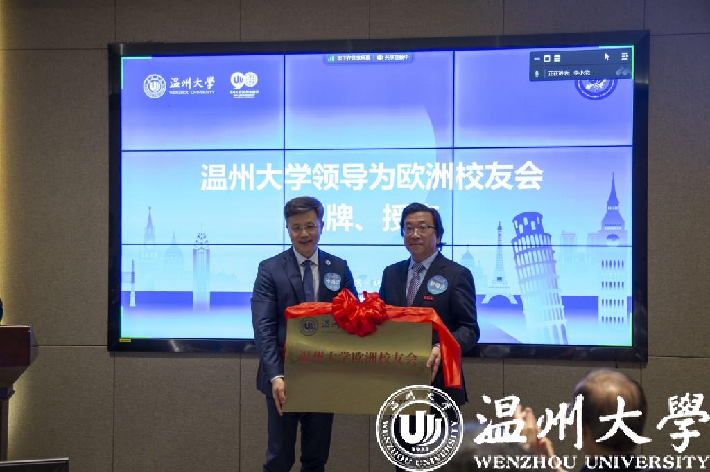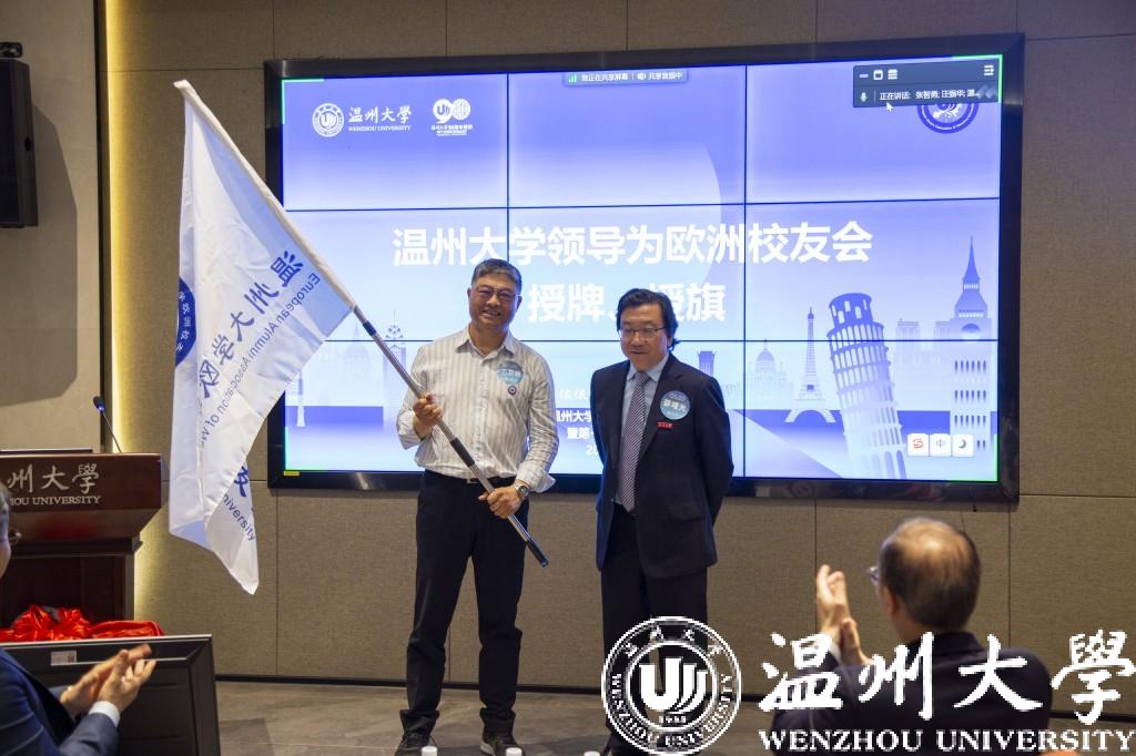 大会审议通过了《亚洲无码 欧洲校友会章程》和亚洲无码 欧洲校友会第一届理事会建议名单。蔡曙光向欧洲校友会授牌、授旗。蔡曙光、陈宏毅向欧洲校友会顾问、会长、副会长、秘书长、副秘书长、理事颁发聘书。温州校友会会长吴东、北美校友会副会长章美华上台致贺词,意大利高校联盟发起者蔡茂生线上祝贺。