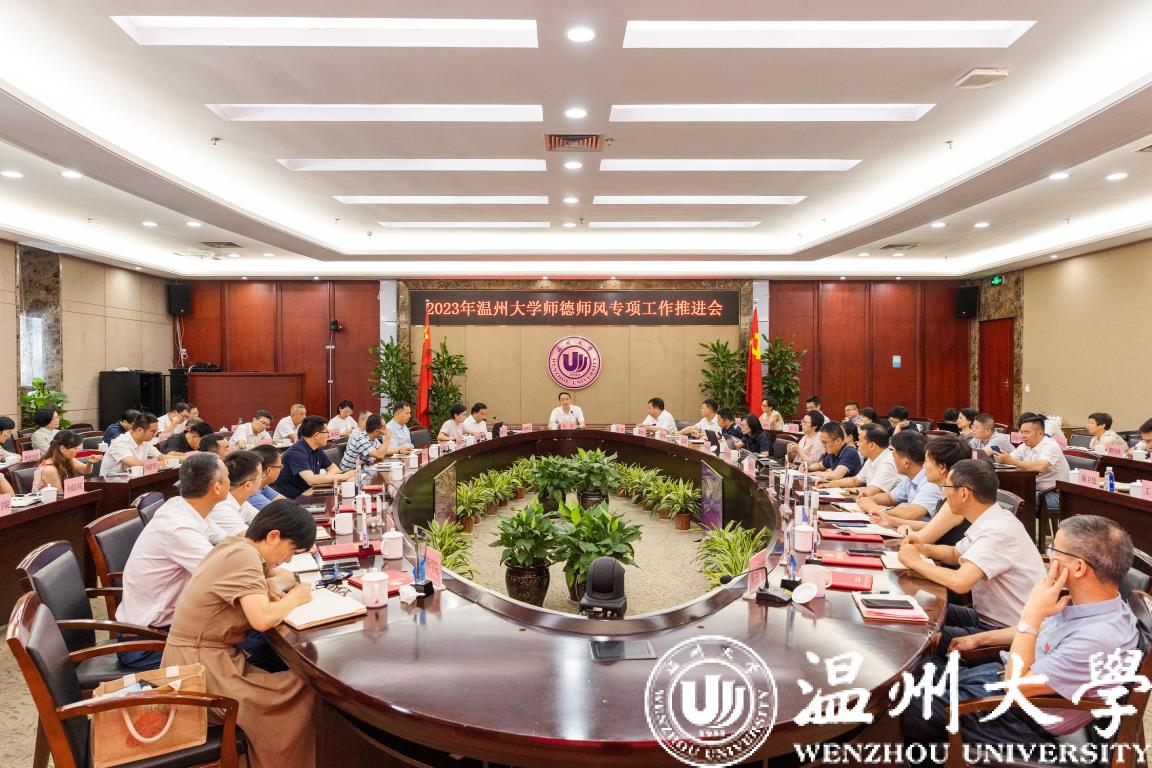 张健作总结讲话。他充分肯定了学校师德师风问题专项整治工作所取得的阶段性成果。为抓实抓好专项整治工作后半篇文章,他强调,一是师德师风建设必须把忠诚教育事业放在首位。教师在教育事业中要体现出对党的绝对忠诚,要把教育作为一项事业,作为一种人生追求,保持对教育事业的热爱。二是师德师风建设必须把热爱学生作为重要考量。教师要把学生放在中心位置,做到爱与严的辩证统一。三是师德师风建设必须提高教育教学能力。教师要敬畏课堂、精心备课、打造金课、牢记思政。要始终怀有敬畏之心,对待课堂一丝不苟。四是师德师风建设必须与学术研究结合起来。要弘扬学术精神、营造学术环境、呼唤学术精品。五是师德师风建设必须与服务地方结合起来。要引导教师准确把握区域和地方发展需求,不断增强服务社会的意识,承担起该承担的社会责任。六是师德师风必须与人才引育结合起来。强化“入口管理”与“过程管理”并重,强化师德表现和考察结论的运用,坚持师德失范行为“一票否决”,强化二级单位党政负责人是本单位师德师风建设第一责任人。七是师德师风建设必须与团队建设结合起来。要引导广大教师树立集体观,积极融入团队,让每位教师在团队中找准自己的位置,开展“有组织科研”。八是师德师风建设必须与文化浸润结合起来。要发挥校园文化的强大力量,充分利用“国旗文化”“数学家文化”以及华侨华人爱国爱乡的文化,涵养积极向上的生活情趣,形成健康活力的身体和心灵。九是师德师风建设必须贯穿行政管理。行政管理人员要平衡好教学与科研关系、学术自由和规范管理关系、个人发展与学校使命关系、核心使命与外延服务关系,学院部门紧密配合、协同联动推进学校各项事业落实。十是师德师风建设必须把遵纪守法作为底线。教师要树立规矩意识,落实意识形态责任,切实做到以德立身、以德立学、以德施教。他希望,各学院、各部门要全面落实师德师风建设主体责任,让师德师风专项工作成果落地生根,打造高质量教师队伍,为服务地方、助力学科科研,为学校建设高水平大学、冲击“双一流”高校注入澎湃动力。