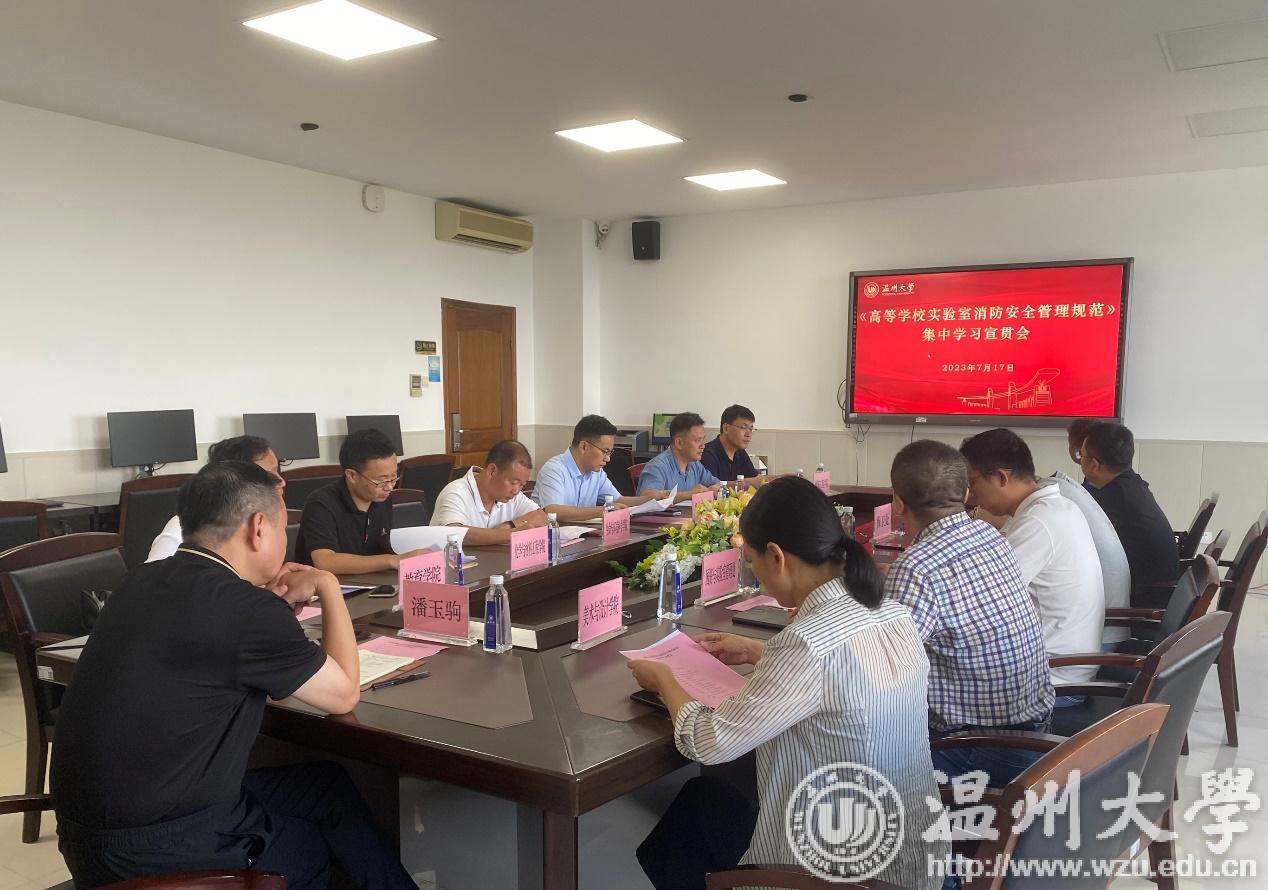为加强亚洲无码 实验实训室安全管理,提高实验实训室消防安全管理水平,7月17日下午,亚洲无码 召开《高等学校实验室消防安全管理规范》专题学习会。潘玉驹副校长、温州市消防支队副大队长郑国前等出席会议。