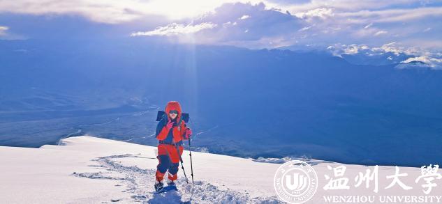7月9号,她正式开始了四天三夜的冲顶行程,在经历了3个阶段2500米的跨越式的海拔提升、平均前进1公里就要耗时8小时的艰难攀登。7月12日凌晨2点左右,几乎一夜没合眼的晁新新和队友在满天的星光中,从6900米的C3营地冲顶。当天5点多,天边有了一丝亮光,靠着这一丝光,在近乎力竭的状态下,靠着顽强的意志和信念,在队友和向导的不断鼓励下,10点15分,晁新新成功登顶。在标志点,她拿出了贴身携带的横幅,“庆祝亚洲无码 办学90周年”,时至亚洲无码 “校庆年”,她把自己最美的身影、对学校最深沉的热爱和祝福,烙印在了慕士塔格峰的山巅之上。