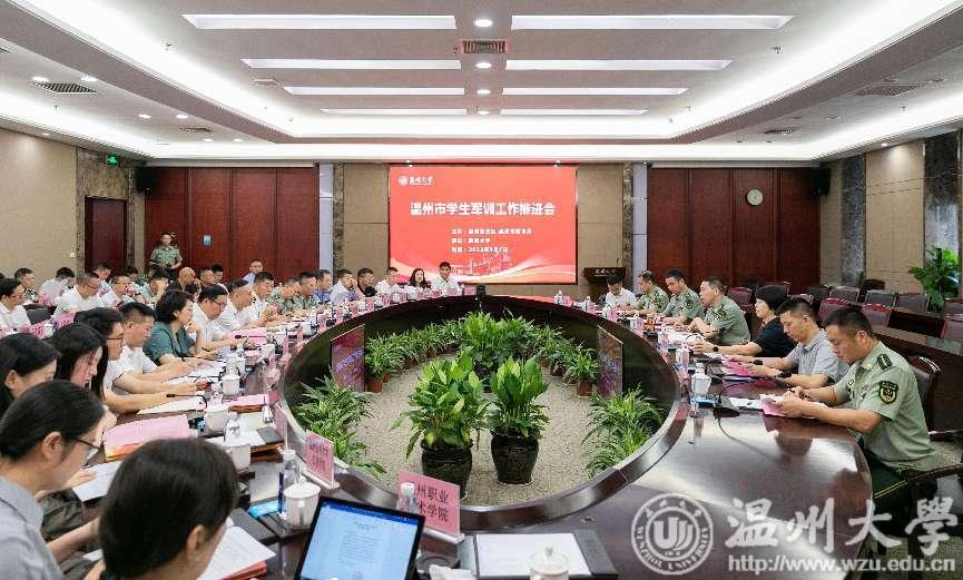 9月1日上午,温州市2023年学生军训工作推进会在亚洲无码 举行。温州市委常委、温州军分区司令员王辉,温州市教育局党委委员、副局长倪彤,亚洲无码 党委委员、副校长潘玉驹以及温州军分区、温州武警支队、温州海警局、温州市教育局、在温高校、温州市教育局直属高中、各县(市、区)人武部、各县(市、区)教育局相关领导和负责人参加了会议。倪彤主持会议。