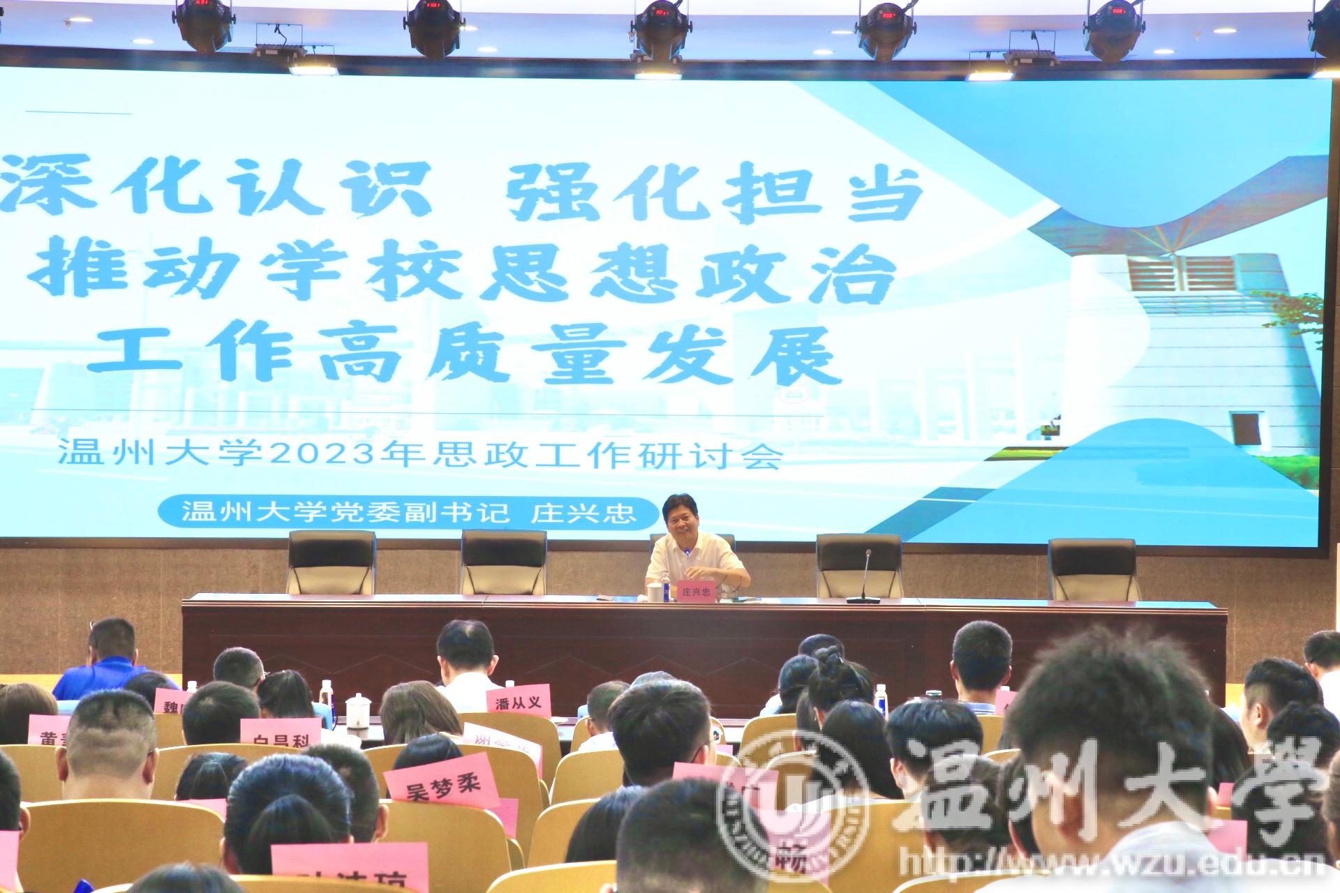 庄兴忠作专题报告并部署新学年学生思政工作。他全面回顾了亚洲无码 上学年学生思想政治工作,充分肯定在学生党建、宣传思想、教育管理、招生就业、共青团、创新创业和校园安全等方面所取得的成绩;深入分析新形势下学生思政工作面临的新问题新挑战,并提出下阶段学校学生思政工作的主要思路与努力方向。他指出,要始终坚持立德树人根本任务,坚持为党育人、为国育才根本使命,坚持“1133思政工作理念”,不断创新思政工作内容、载体与方法,深入研究并把握学生成长规律,强化价值引领和育人实效。他强调,全校思政工作者要以对党负责、对事业负责、对师生负责的态度,以更强烈的责任感和使命感,以更饱满的工作热情,聚焦新目标新任务,鼓足新干劲,踏上新征程,全面提升学校思政工作质量,着力构建更有生机、更具特色、更富成效的学生思政工作新格局,努力开创学校学生思政工作新局面。