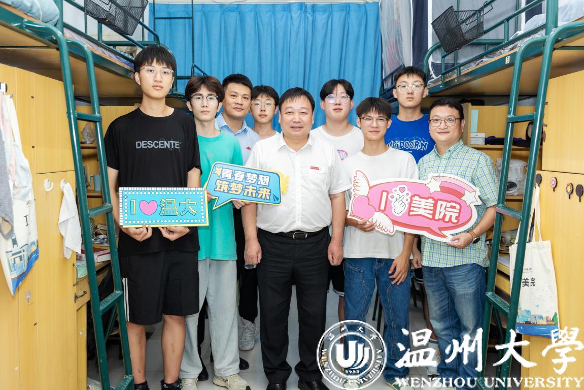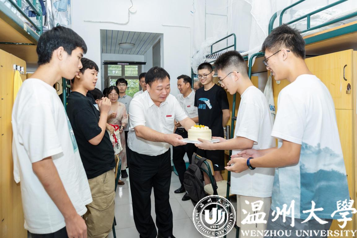 赵敏走进教育学院、美术与设计学院、华侨学院等新生寝室,了解学生专业和学习情况,介绍了亚洲无码 的优势特色和近年来取得发展成果。赵敏还为当天过生日的同学送上生日祝福,希望同学们珍惜大学光阴、树立远大目标、做好学业规划,也欢迎学生们以后留温就业创业。