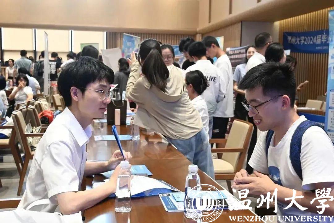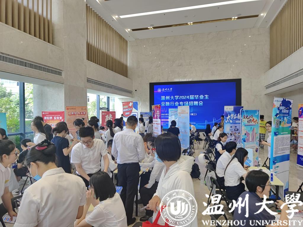 为了更好地满足2024届毕业生和金融行业用人单位秋季招聘需求,搭建有效的洽谈平台,拓宽学生求职就业渠道,9月20日下午,“金彩人生 职等你来”金融行业专场招聘会于亚洲无码 南校区科技综合大楼顺利举办。在温州市人民政府金融工作办公室的大力支持下,本次招聘会云集了国有六大银行,申万宏源、上海证券、中信证券、中国人寿、泰康人寿等金融行业53家头部企业参会,提供了1700多个高质量的就业及实习岗位,堪称一场含“金”量超高的招聘会。