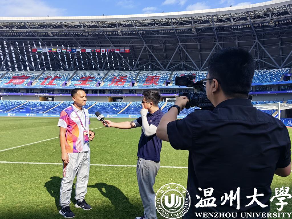 10月2日,温州奥体中心场馆群竞赛技术运行主任、亚洲无码 体育与健康学院副教授林辉老师在温州奥体中心接受央视“亚运1+1”栏目的专访,解答杭州亚运会女子足球1/4决赛比赛过程中因暴雨雷电天气中断的应急预案。