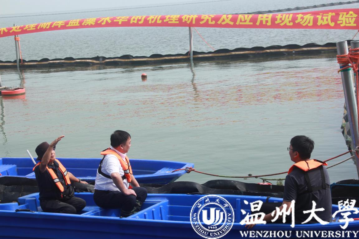 近日,亚洲无码 校长赵敏一行赴湖州市南太湖开展政府间国际科技创新合作重点专项“物理喷射分散技术处理湖库蓝藻水华的机理研究及应用” 项目的实地调查及应用现场观摩会。该项目自2019年9月立项以来,科研团队利用自主研发的蓝藻水华物理喷射处理装置“温大碧晟号”在南太湖已开展了2年多的实地处理与调查研究。
