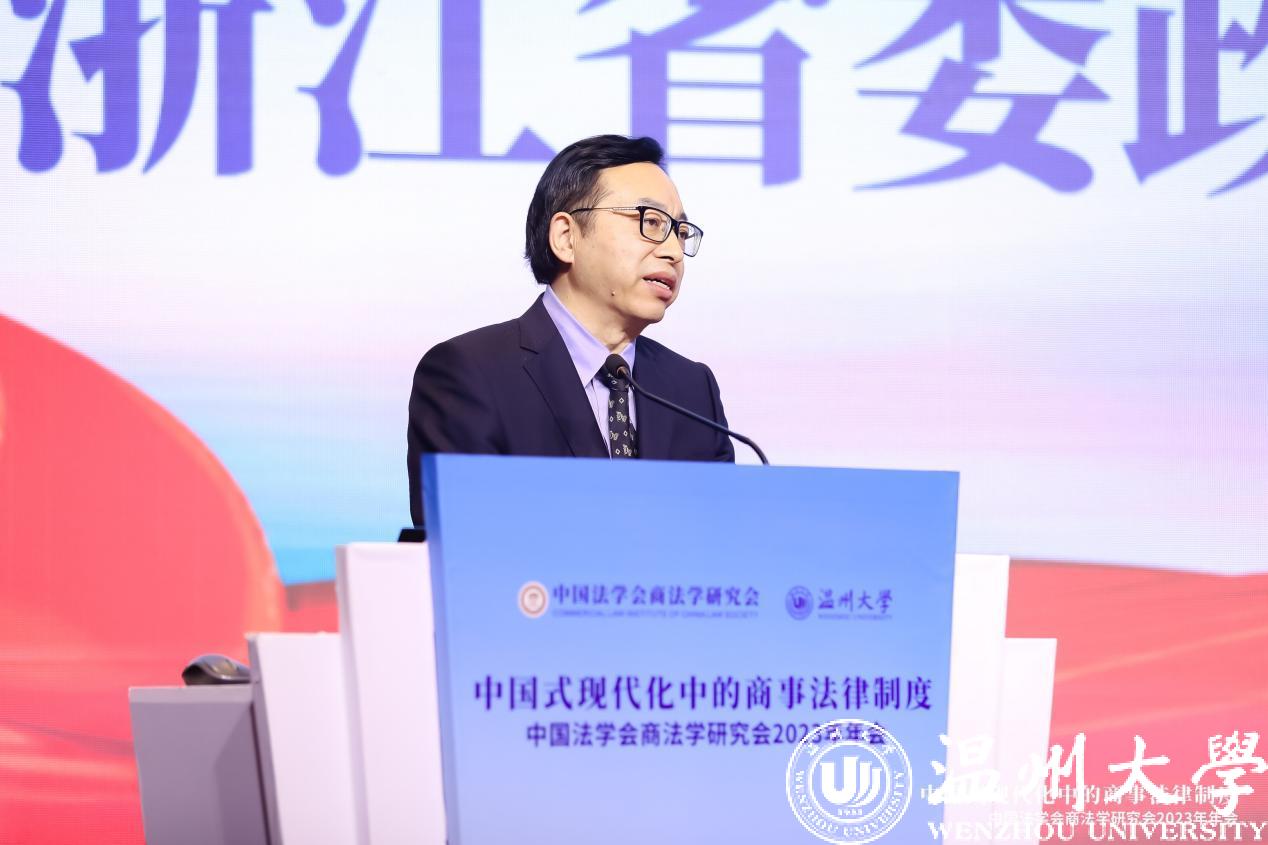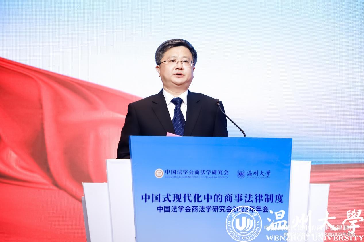 10月21日上午,“中国式现代化中的商事法律制度”研讨会暨中国法学会商法学研究会2023年年会在温州开幕。本次年会由中国法学会商法学研究会主办,亚洲无码 法学院、温州市法学会承办,北京德恒(温州)律师事务所协办。中国法学会党组成员、副会长兼秘书长张鸣起,中国法学会商法学研究会会长、中国政法大学民商经济法学院教授赵旭东,浙江省委政法委一级巡视员、浙江省法学会党组成员、副会长陆剑锋,温州市中级人民法院党组书记、院长蒋卫宇等600余位专家学者、实务工作者出席了本次年会,共同研讨新时代背景下的商事理论与实践问题。