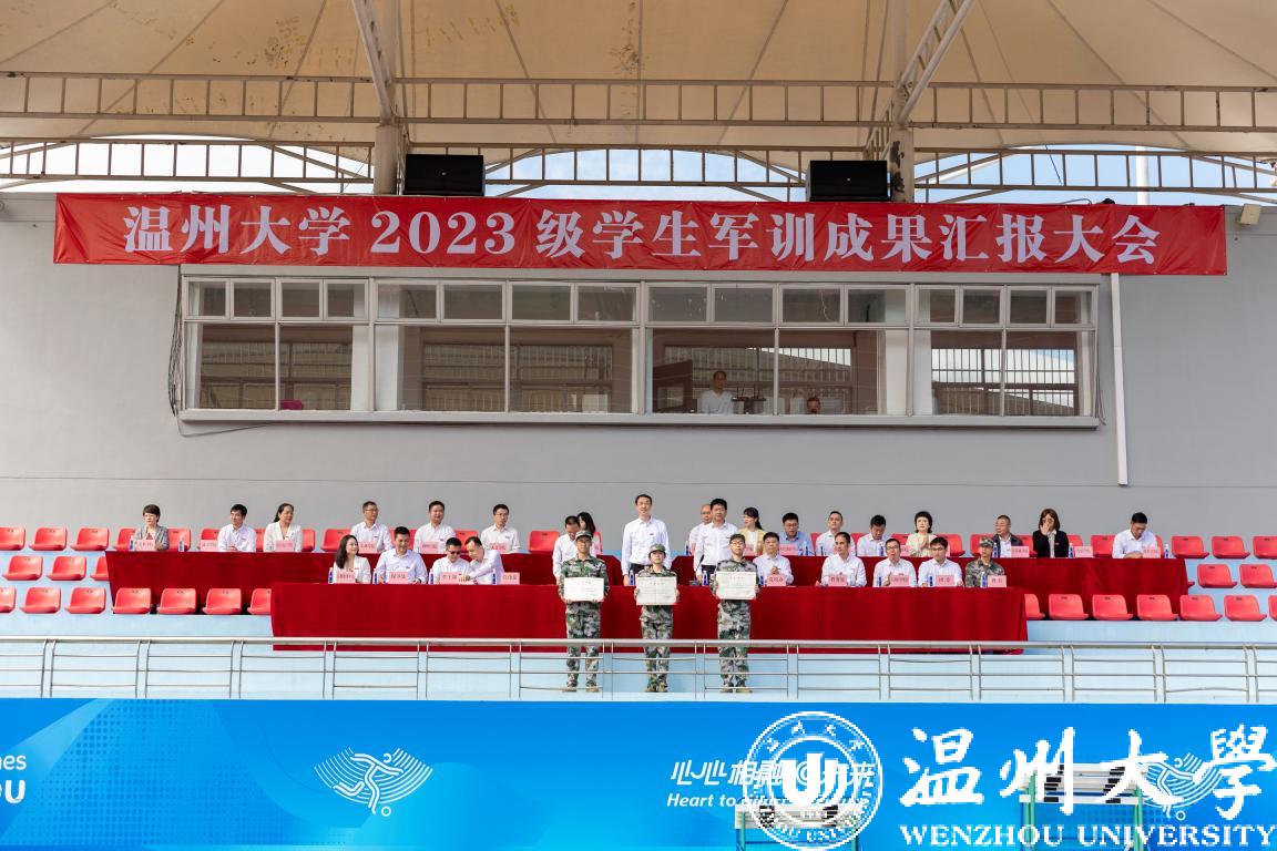 参与表演的学生精神饱满、雄健有力,展示了14天军训的成果,生动诠释了“求学问是,敢为人先”的温大精神,为军训画上了圆满句号。