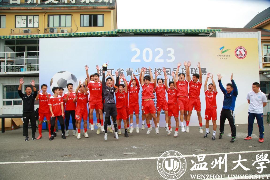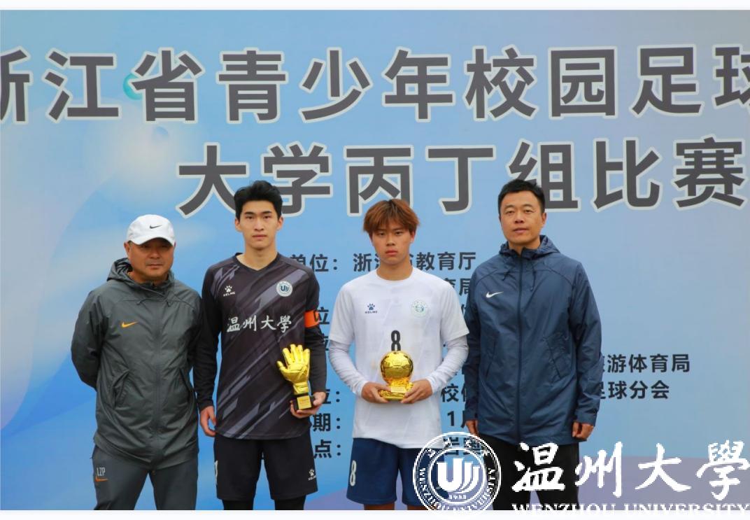 11月7日,2023浙江省青少年校园足球联赛大学丙丁组比赛在台州市黄岩区落下帷幕,亚洲无码 鹿呦男子足球队奋力拼搏,以五战全胜的战绩勇夺男子丙组比赛冠军。体育与健康学院教练林辉老师荣获“优秀教练员”荣誉称号、队长潘柱豪获本次联赛唯一“最佳门将”称号、队员董文晖获“最佳射手”荣誉称号、队员叶旭凯、许晨、饶文韬、舒安获“优秀运动员”荣誉称号。