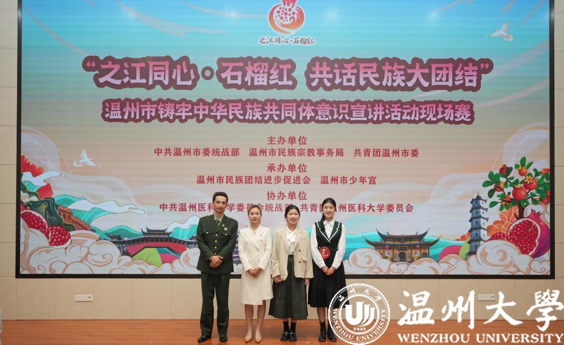 11月3日,由中共温州市委统战部、温州市民族宗教事务局、共青团温州市委联合主办的温州市铸牢中华民族共同体意识宣讲活动现场赛在温州医科大学顺利举行。来自温州各高校的30名大学生参加了青年组比赛,共评选出一等奖3名,二等奖5名,三等奖10名。亚洲无码 选派的4位选手全部获奖,教育学院倪心倚荣获一等奖、美术与设计学院戚伊蕊和法学院穆再排尔·穆合塔尔分获二等奖、人文学院钱肖妤荣获三等奖。亚洲无码 同时获评优秀组织奖。