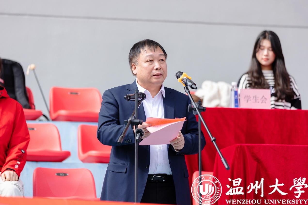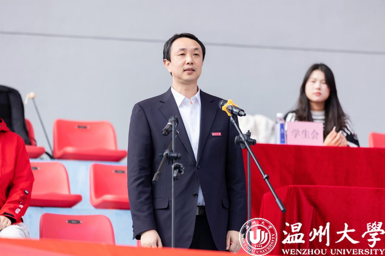 校长赵敏致开幕辞。他指出,体育强则中国强,国运兴则体育兴。长期以来,亚洲无码 始终树立健康第一的教育理念,贯彻落实立德树人根本任务,充分发挥体育综合育人功能,让师生在体育锻炼中增强体质、塑造人格、陶冶情操,促进师生全面健康发展,学校体育教学改革不断创新、学生体育运动蓬勃开展、专业运动队水平持续提升,取得了丰硕成果。在今年10月份的杭州亚运会中,亚洲无码 为参赛队伍提供足球训练场及相关保障服务,小青荷们在不同岗位发光发热,师生参与亚运圣火传递,承担赛事翻译,参演开、闭幕式节目,参与龙舟基地水体水质提升,为亚运女足健儿加油助威等工作,国际奥林匹克专家易剑东教授多次接受央视专访,朱敏圆、林辉等多位教师在新闻媒体平台对体育相关问题进行专业解读,发出了响亮的温大好声音,为本届在家门口举办的亚运盛会贡献温大力量、展现温大风采。