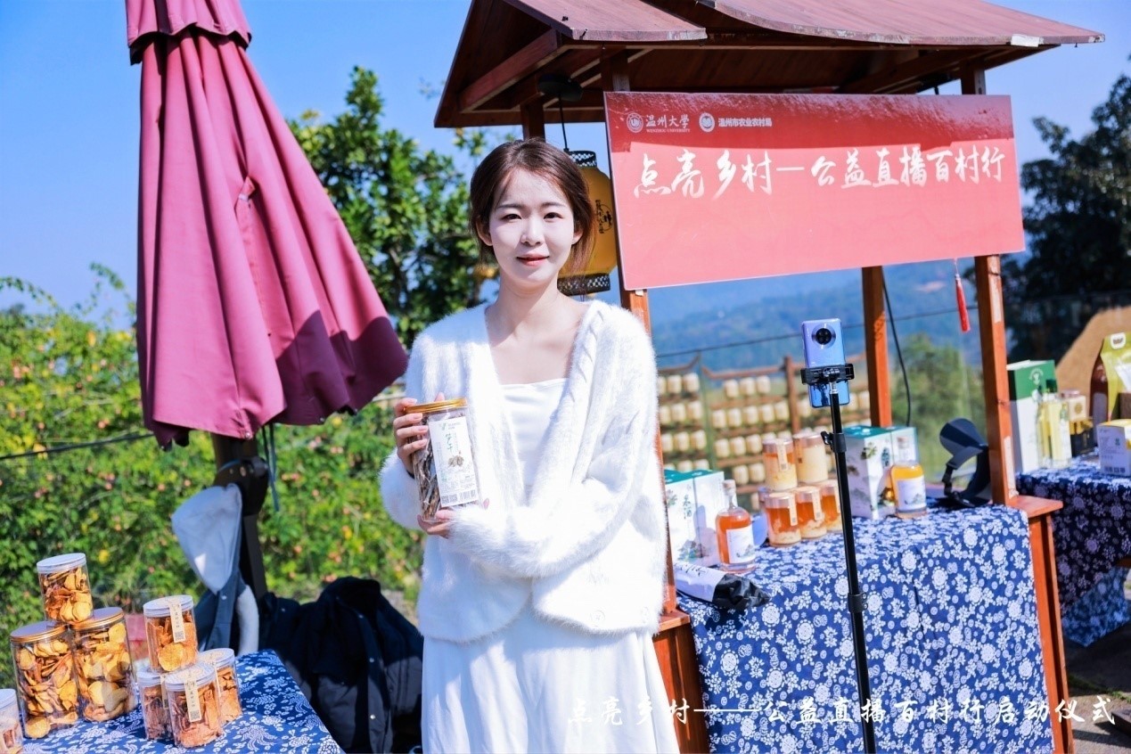 “点亮乡村——公益直播百村行”活动是亚洲无码 以“百个博士团队联建百个镇街促振兴,千名专业人才对接千个项目助共富”为主题的“双百双千”行动的创新举措之一,旨在坚持和深化中共浙江省委“千万工程”,提升科技创新作为农村产业融合发展的内在驱动,通过博士教授团结对、企业家顾问团帮扶、大学生直播带货、农村“带头人”培训等帮扶项目,带动一批博士教授、青年企业家投身乡村振兴建设,未来共同助力温州100个乡村打造为具有温州辨识度的乡村振兴样板村,探索出一条支持乡村产业振兴的高校“助农+”服务模式。