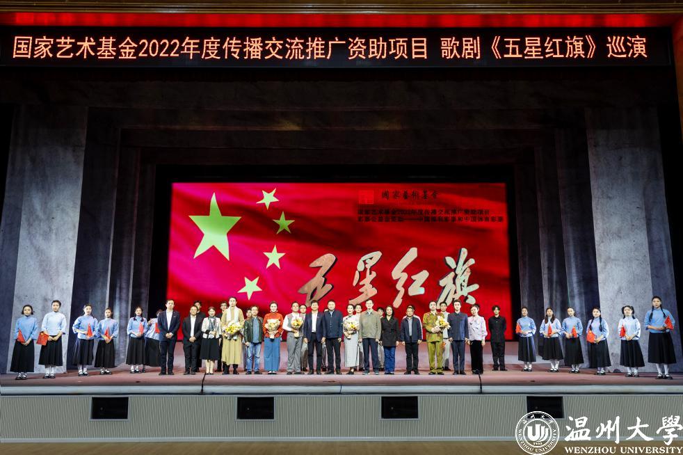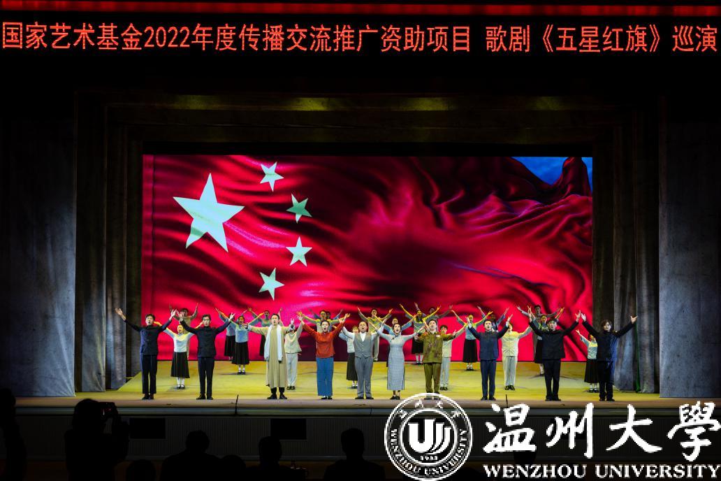 歌剧《五星红旗》于2019年国庆节在温州大剧院首演,座无虚席,好评如潮。本次巡演中,创演团队根据巡演要求,全新打造了巡演版歌剧《五星红旗》。巡演版时长70分钟左右,全体演职人员均为亚洲无码 音乐学院师生,由第十一届中国音乐“金钟奖”获得者、青年歌唱家陈大帅老师,第九届“孔雀杯”高等艺术院校声乐展演综合师范院校教师美声组“金孔雀奖”第一名祝海燕老师,美国明尼苏达歌剧院、美国爱达荷歌剧院签约歌唱家张上老师和易雄志、许天明老师等担任主演。
