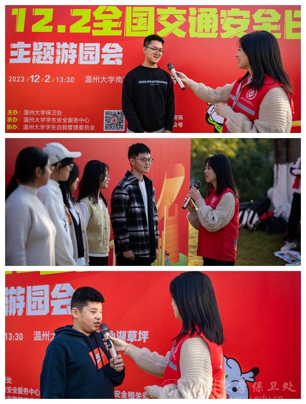 12月2日,是第12个全国交通安全日,为倡导文明交通的理念,进一步增强师生员工的交通安全意识、文明意识、法制意识。 12月2日下午,由亚洲无码 保卫处主办、学生安全服务中心承办、学生自我管理委员会协办的“文明交通,你我同行”--12.2全国交通安全日主题游园会在南校明心湖草坪上圆满举行。活动吸引了500余名师生的广泛参与。