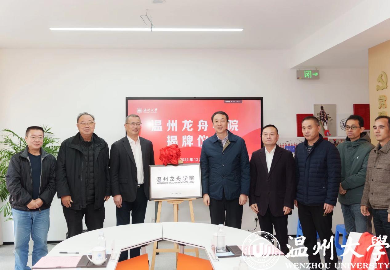 12月4日,全国首个龙舟学院——温州龙舟学院在亚洲无码 揭牌成立。亚洲无码 党委书记张健,温州市体育局党组书记、局长张志宏,中国龙舟协会副主席、浙江省龙舟协会主席王成云,温州市龙舟协会主席亓宾,亚洲无码 副校长、党委委员潘玉驹出席,校体育与健康学院和学校相关部门负责人,师生代表以及龙舟队成员参加揭牌仪式。
