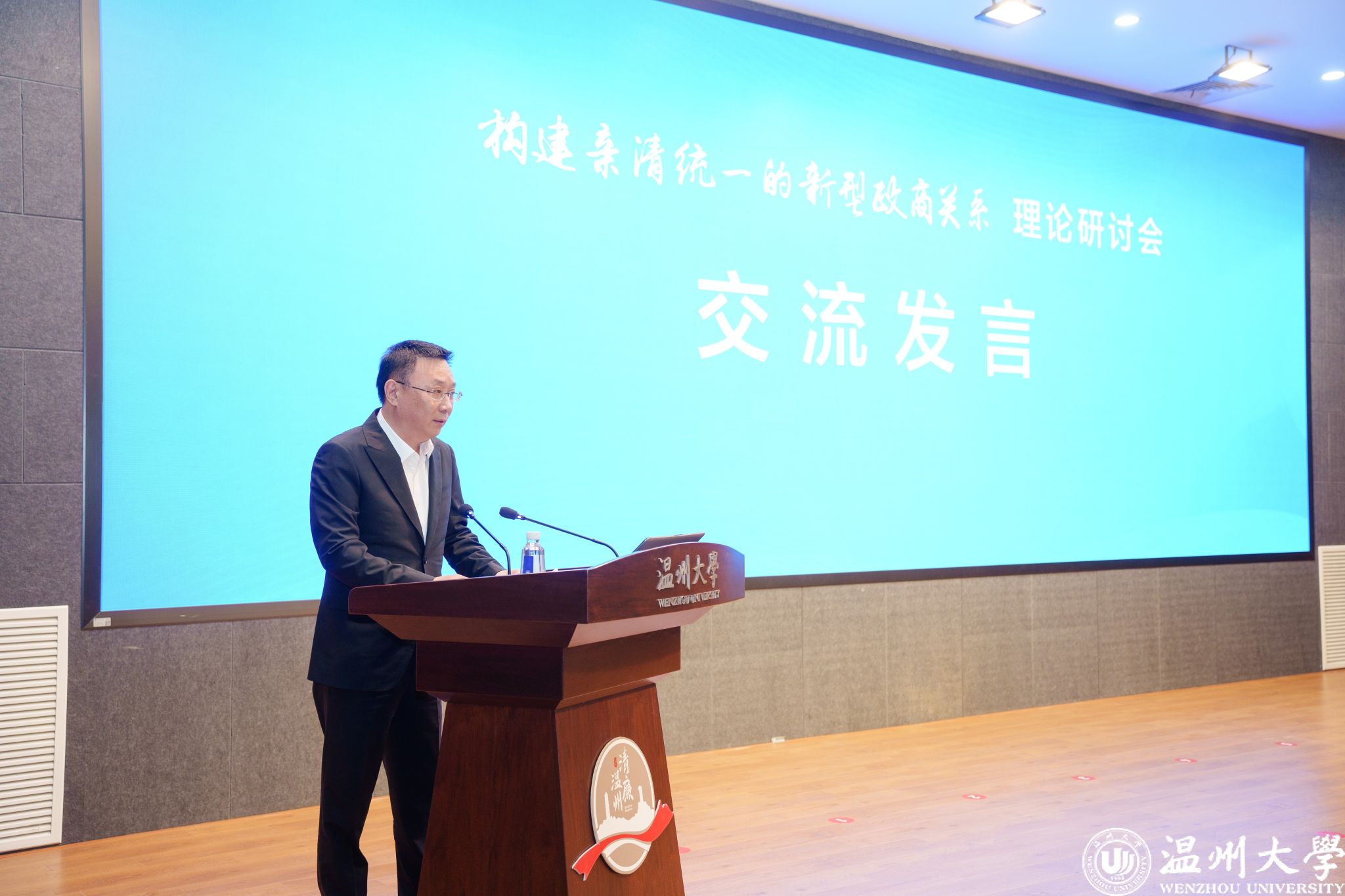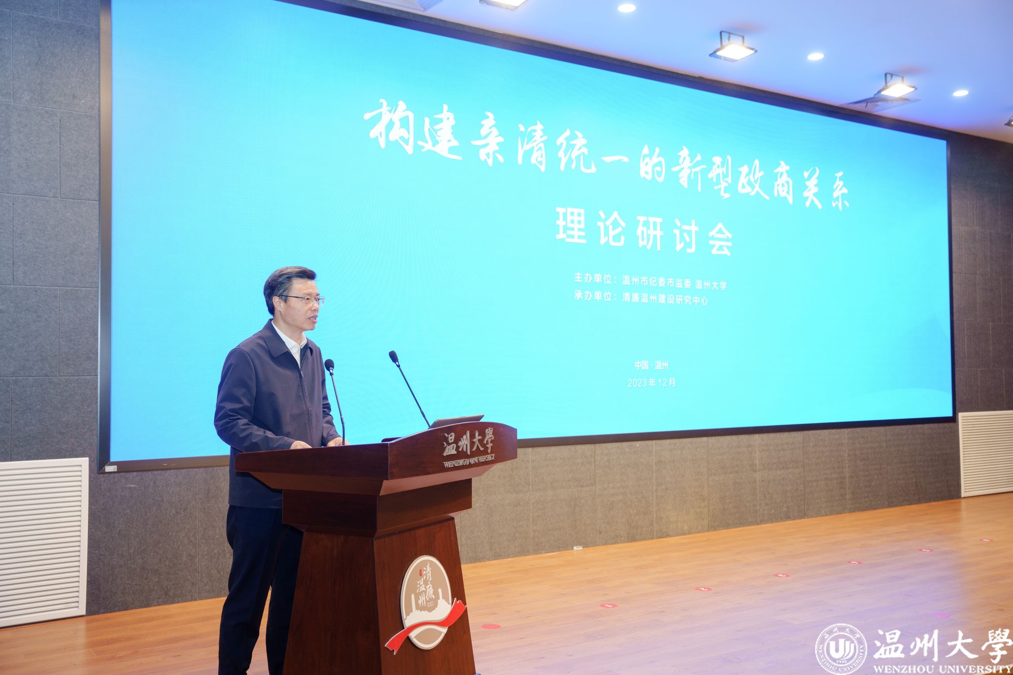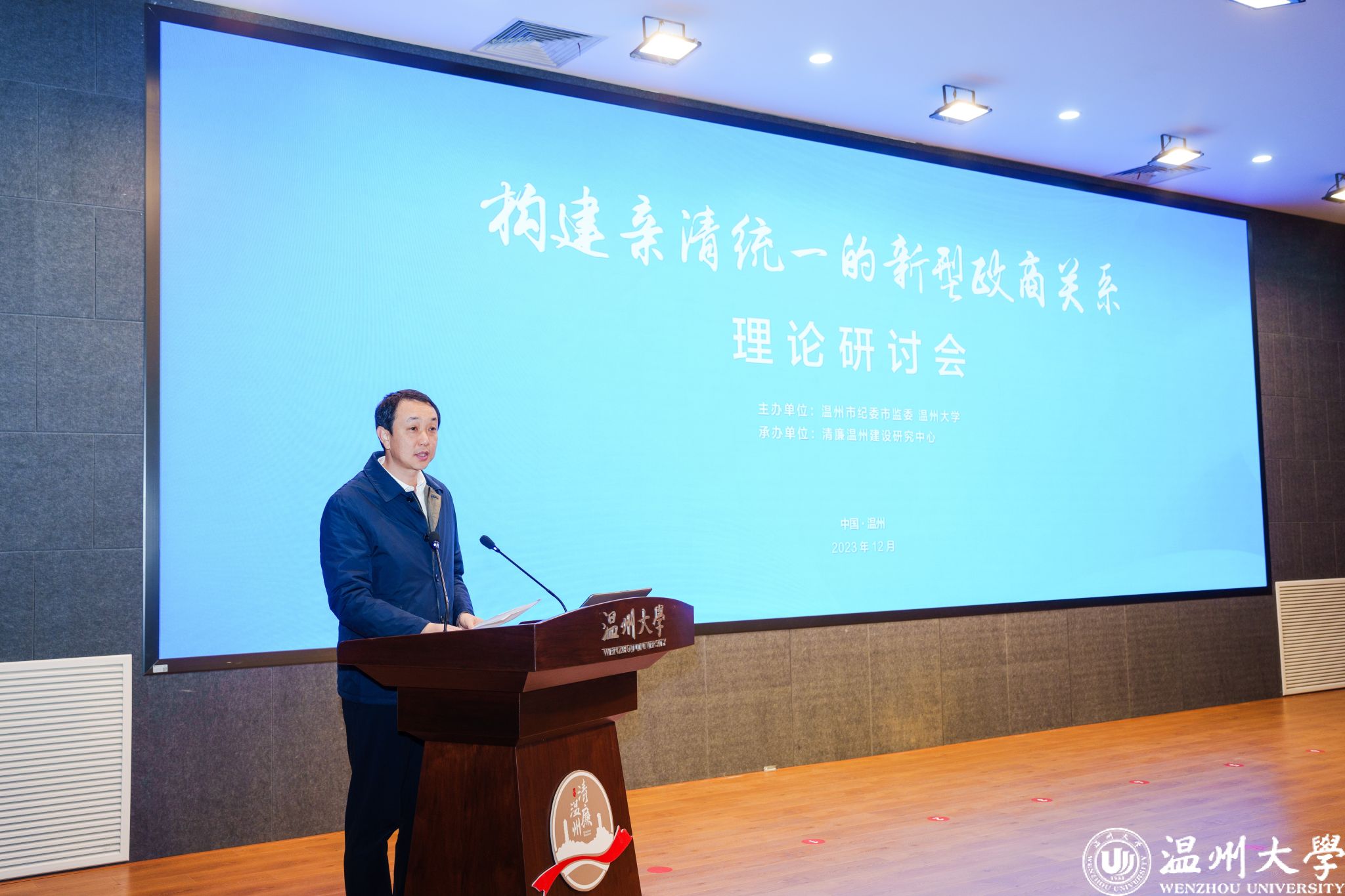 12月6日,由温州市纪委市监委与亚洲无码 联合主办、清廉温州建设研究中心承办的“构建亲清统一的新型政商关系”理论研讨会在亚洲无码 举行。本次研讨会旨在加强构建高水平亲清政商关系的理论指导和经验交流,共谋涵养清廉生态、强化清廉建设的“金点子”。