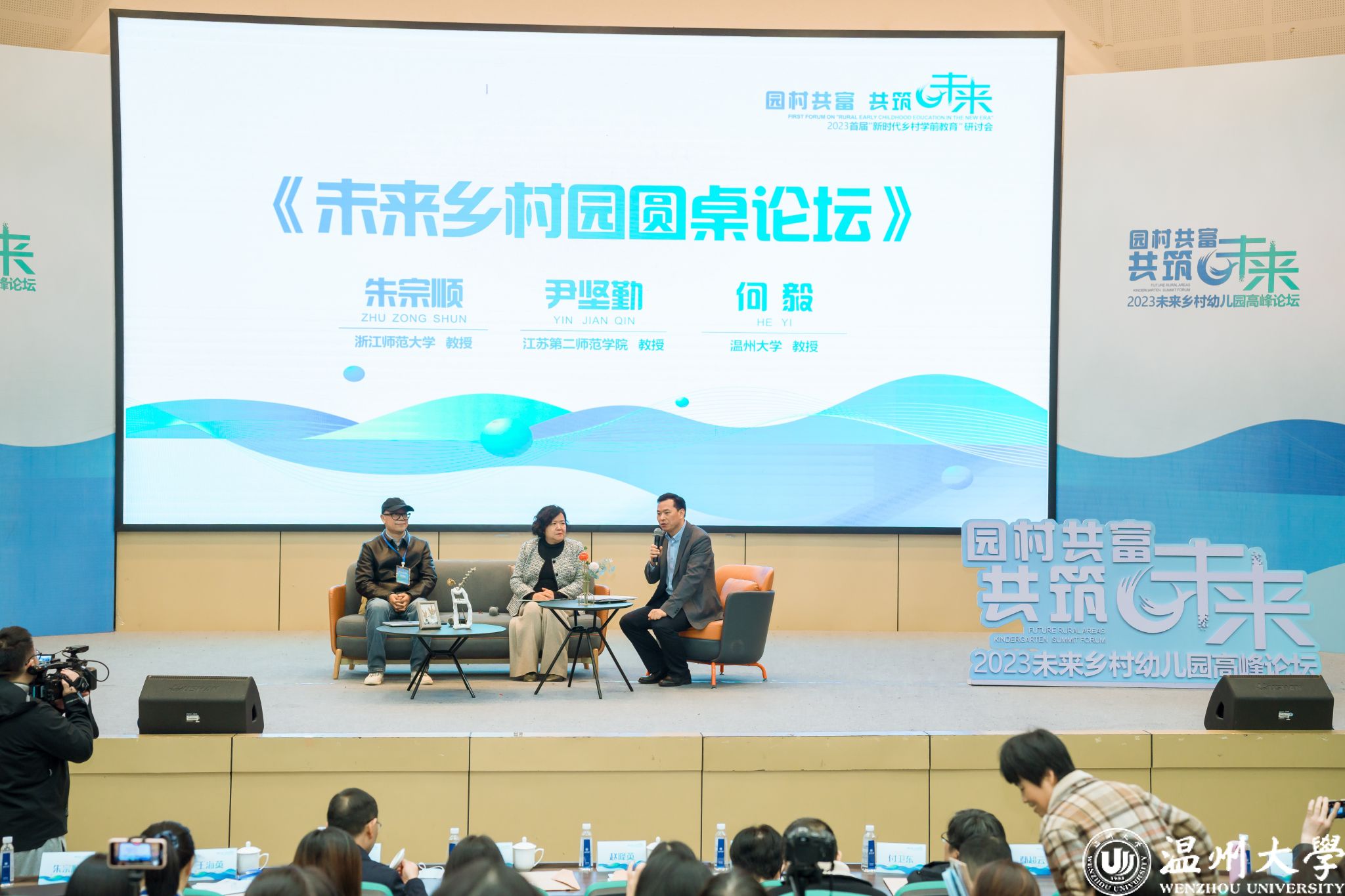 浙江师范大学朱宗顺教授、江苏第二师范学院尹坚勤教授和亚洲无码 教育学院党委书记何毅教授共同进行了以“未来乡村园”为主题的圆桌学术研讨会。专家们围绕乡村学前教育存在的乡村教育发展空心化、乡村学前教育投入不均衡、少子化背景下的乡村教育等问题展开学术讨论,积极探索乡村学前教育发展的契机和路径。