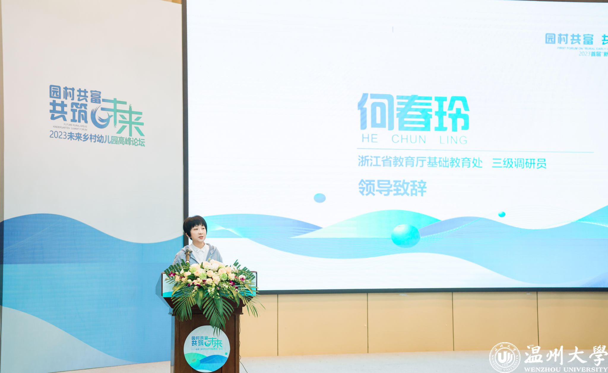 何春玲致辞。她指出,学前教育作为重要的民生工程,浙江省坚持一手抓资源建设,一手抓内部发展。在教育事业快速发展的同时,实施学前教育城乡一体化,不断提升农村幼儿园保教质量,全面推进未来乡村标准建设,促进乡村振兴。未来将继续围绕着乡村学前教育可持续发展和儿童未来发展的需要,重构乡村幼儿园要素,期待未来乡村园成为新时代乡村学前教育的样本。